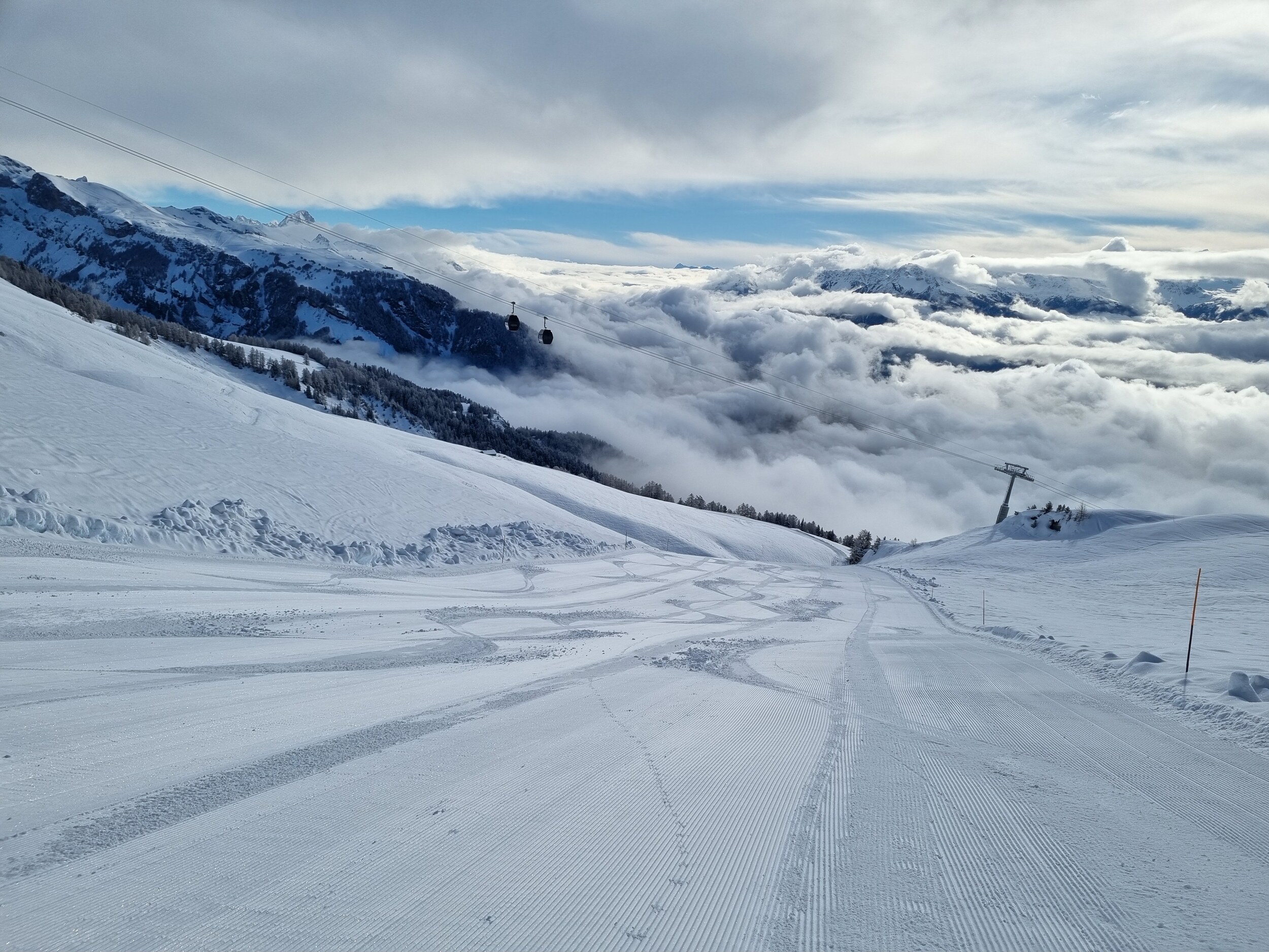 Heute war ich in Anzeré. Es war hervorragend. Die Pisten waren sehr gepflegt und top zu fahren. Einige Hänge sulzten gegen 12 Uhr auf.