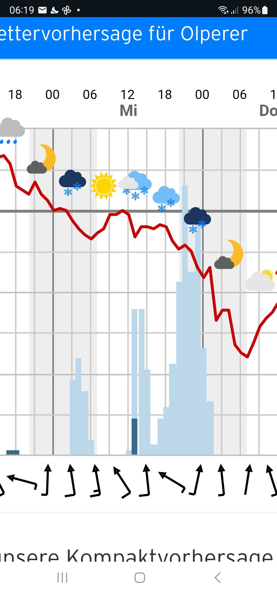 Jetzt soll es heute und morgen noch warm bleiben. Mittwoch gibt es dann Schnee, aber nicht besonders viel. Und dann geht es tendenziell trocken-mild weiter.