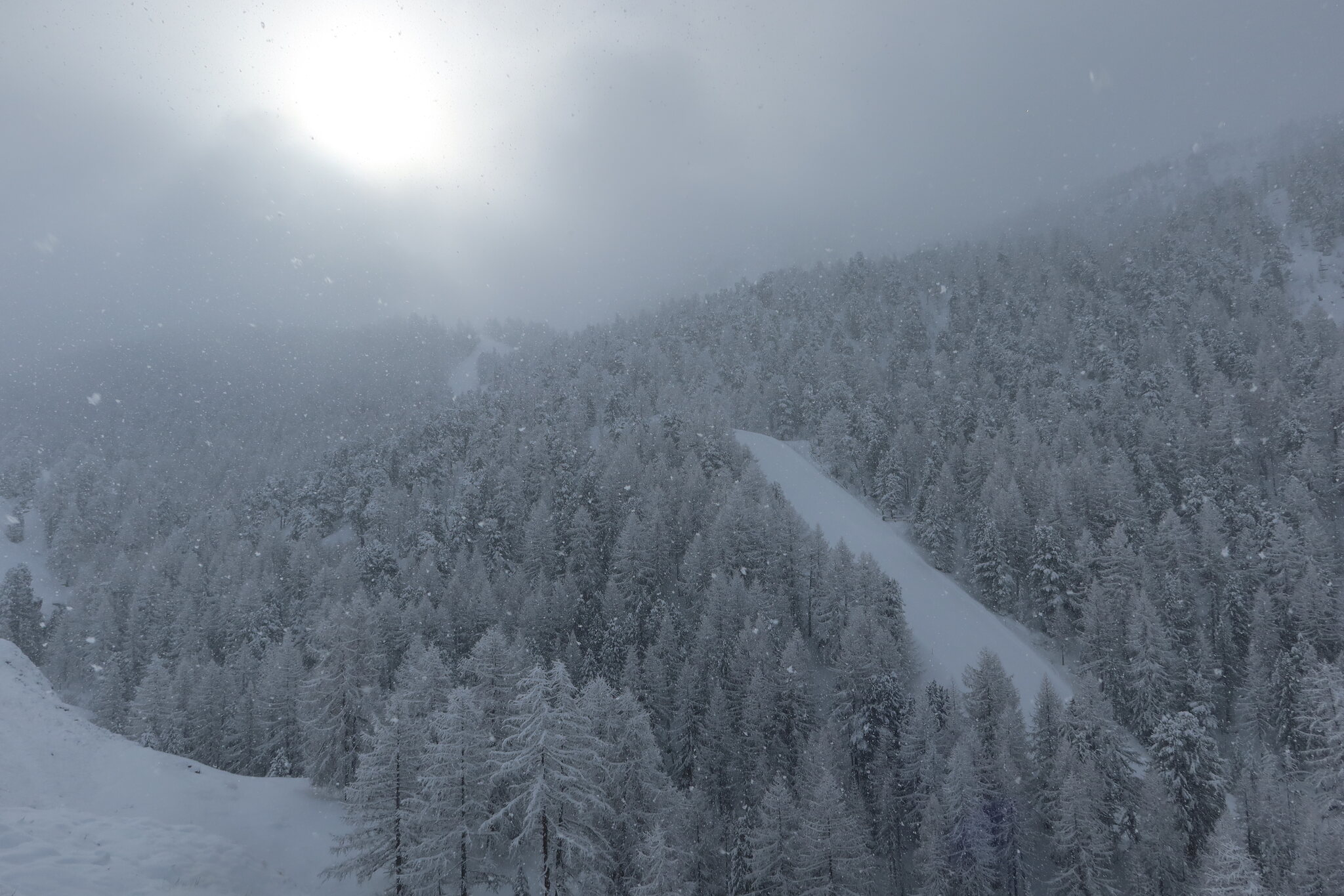 In der Nacht von Samstag auf Sonntag hat es je nach Ort bitter nötige 10-25 cm geschneit und die Öffnung der Anlagen massiv verzögert. Die Rote Nase sowie alle lawinengefährdeten Abfahrten sind geschlossen geblieben (Balmbrunnen, Kumme/Tufternkumme, Rotweng, Furgg-Furi). Ich habe den Fehler gemacht und im Bereich Rothorn gestartet, von wo aus man erst Mittags in die anderen Bereiche wechseln konnte. Zusätzlich wurde Findeln früh als offen angezeigt und war aber noch geschlossen, weshalb man nur ins Tal abfahren konnte. Gleichzeitig sind Massen an Leute mit jeder weiteren Öffnung über alle Abfahrten hergefallen und die obere National war zum Beispiel keine 20 Minuten nach Öffnung der Kombibahn keine präparierte Piste mehr, sondern nur eine Ansammlung von Schneehaufen. Irgendwann wurde es mir zu blöd und ich bin ins Tal und mit dem Bus Richtung Süden gewechselt, da inzwischen Italien offen war (trotz der gefühlt noch schlechteren Sicht als am Vortag). Ab diesem Zeitpunkt war ein Großteil meiner Abfahrten auf beiden Seiten der Grenze purer Blindflug über zusammengefahrene Neuschneehaufen. Bei der letzten Abfahrt vom Klein Matterhorn habe ich bis knapp oberhalb Furgg durchgehend Weiß gesehen und bin mehrmals fast von der Piste abgekommen, da ich den nächsten Markierungspfosten nicht erkennen konnte oder auf die schnelle unklar war, ob der Pfosten im Nebel vor mir nun die rechte oder linke Pistenmarkierung ist. Die meisten Abfahrten waren ab Mittag selbst mit Sicht nur noch schlecht zu fahren und da ich mit dem Zug nach Hause fahren musste, habe ich relativ früh Schluss gemacht.