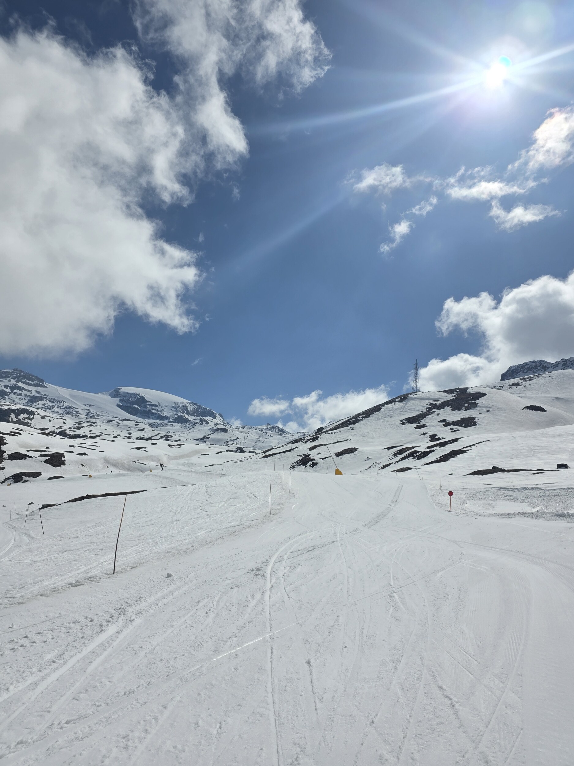 Auf der Italienischen Seite teilweise fast Privatskigebiet. Am Morgen noch etwas hart, dann aber schön weich. Gegen Schluss noch Furgsattel. Hier hat es doch einiges mehr Leute. Auch Talabfahrt bis Zermatt super zu fahren. Am Schluss halt noch ein kleiner Fussmarsch bis zum Bus. Dank den wenigen Leute null Buckel.
