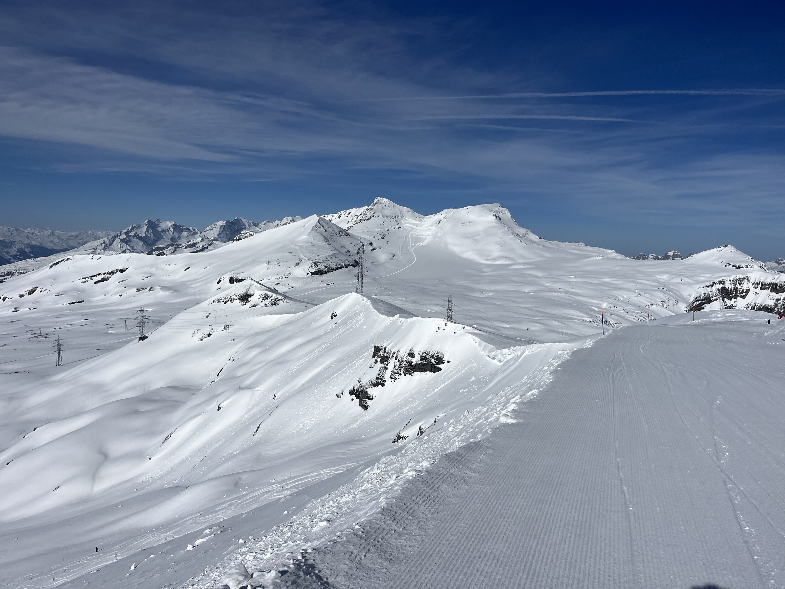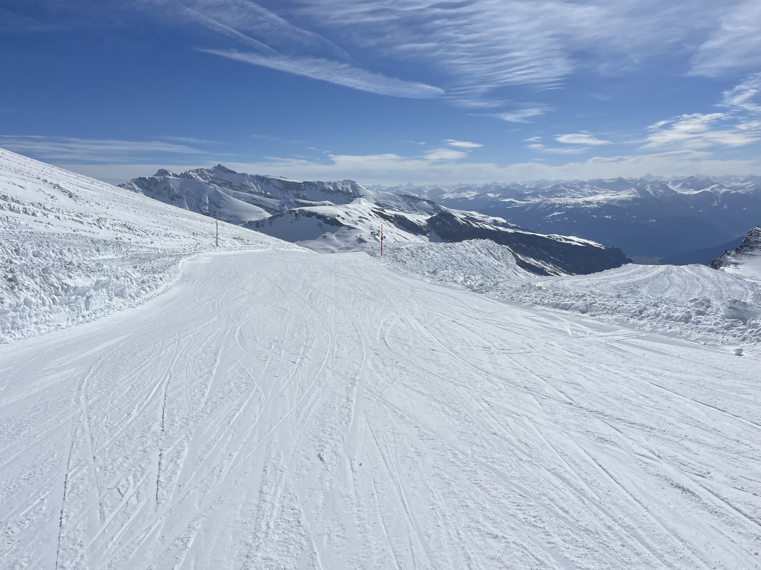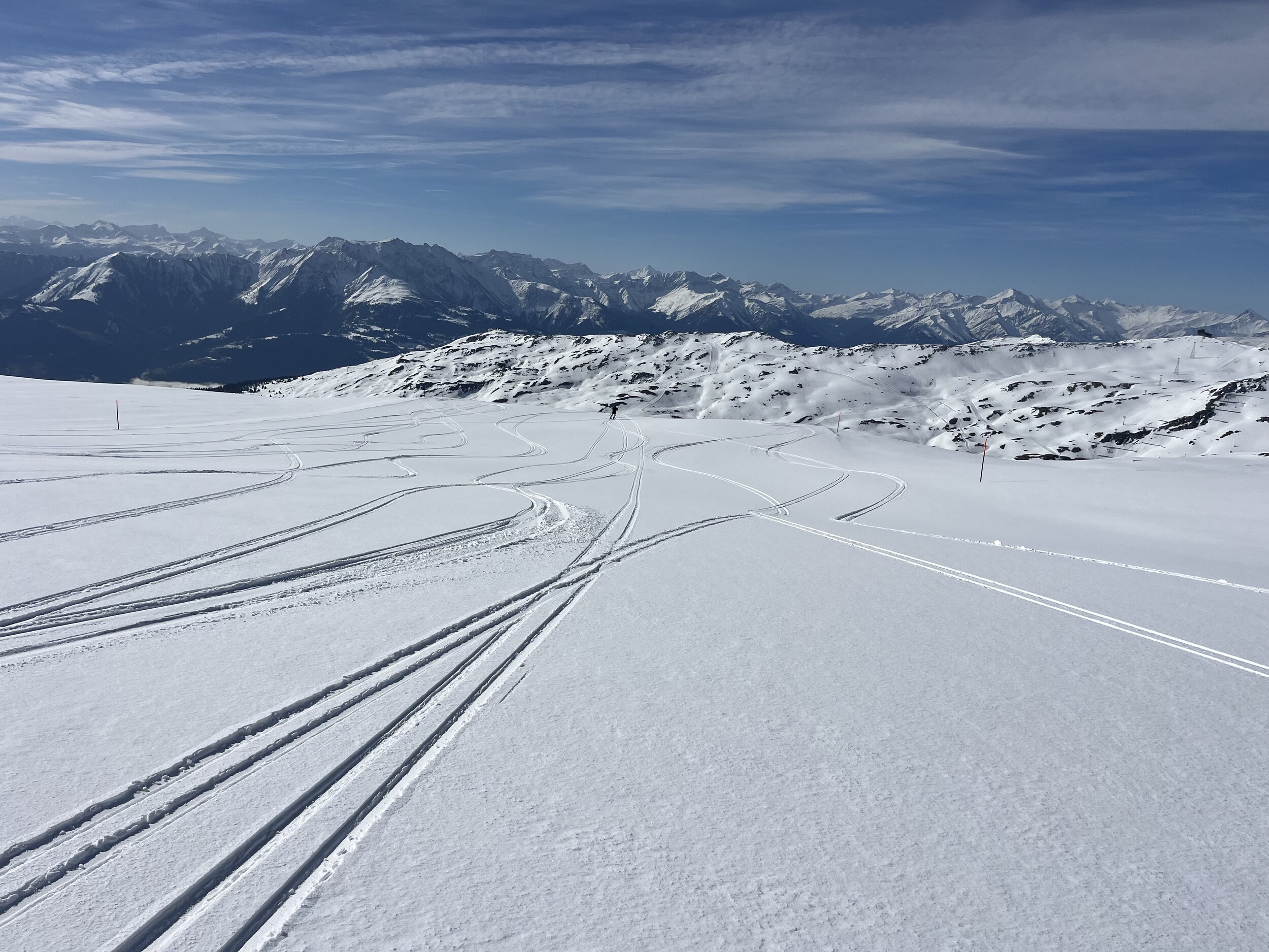 Auf Mutta hat es nach dem Präparieren 5mm Neuschnee gegeben. Sehr schön.