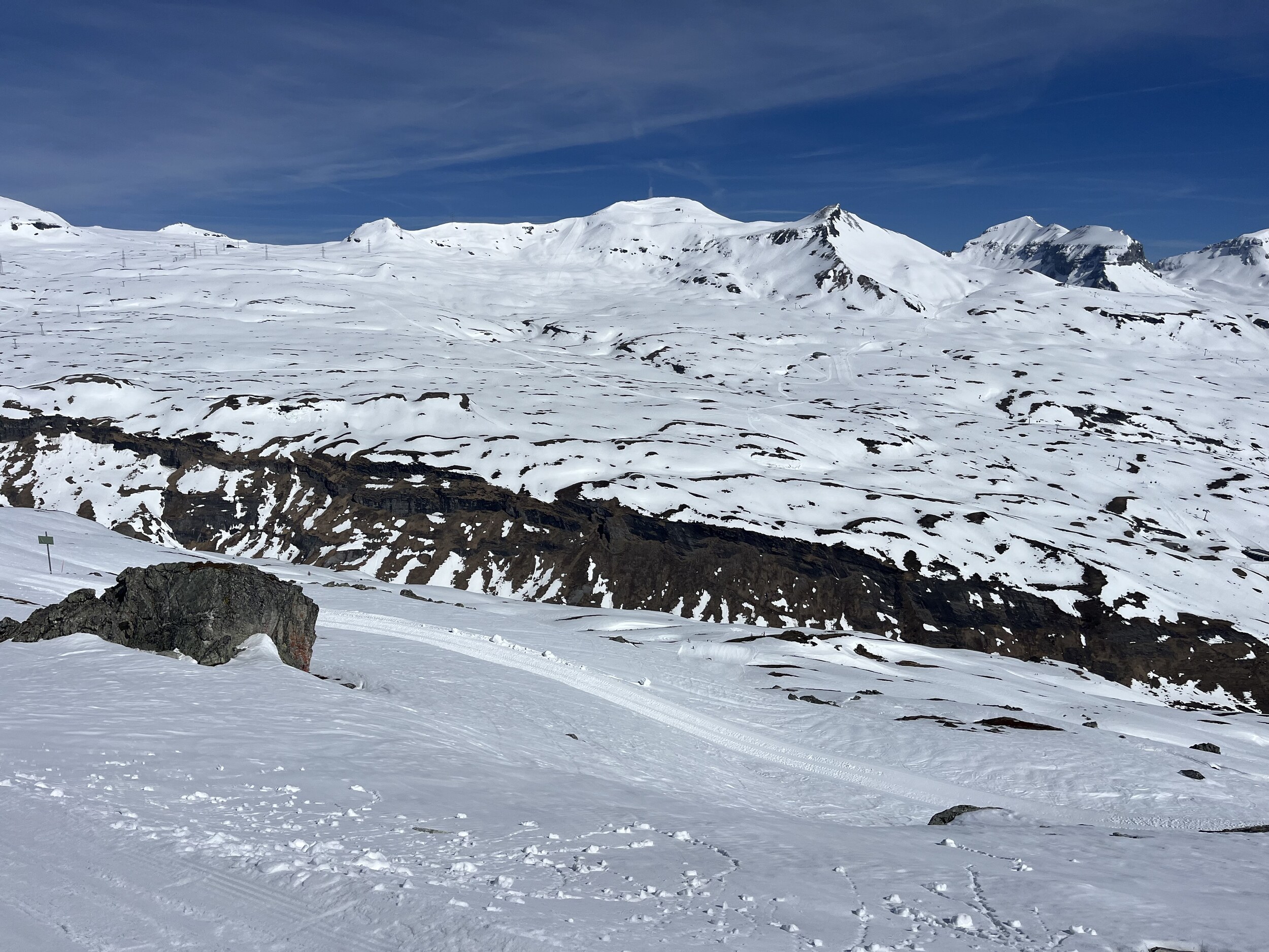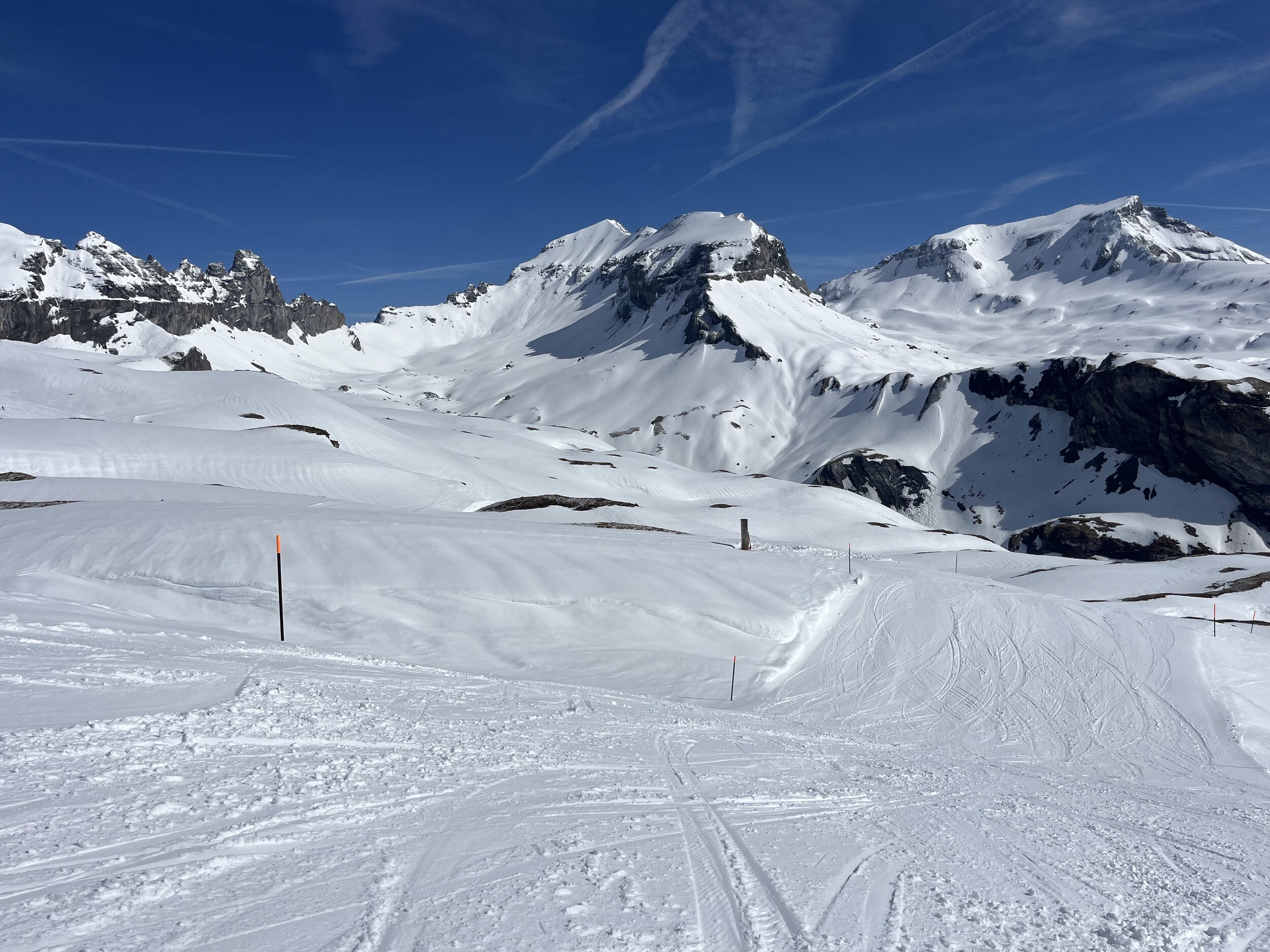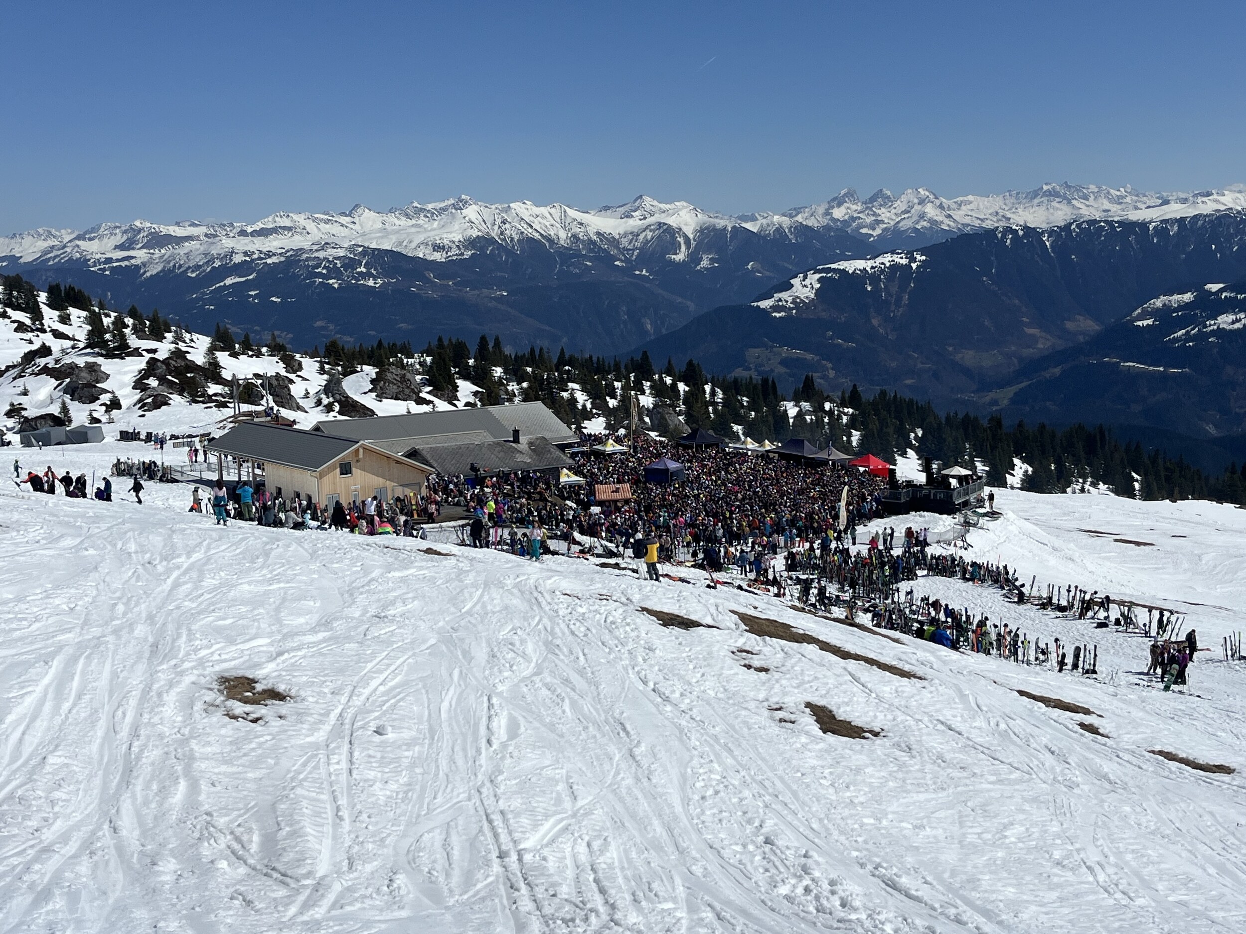Danach noch ein paar Fahrten am Crap und Alp Dado, bevor ich mich ins Schnulz-Getümmel in Plaun stürze, siehe unten. Dafür an Mutta dann totale Leere: Dasselbe auf LaSiala: Immer wieder beeindruckend, das satte Grün währemd man hier im Weiss steht: Vom Winter in den Sommer. An manchen Sommertagen ist es nicht so warm auf dem Liegestuhl vor dem Ferienhaus. Heute gibt es weniger Punkte als gestern, zu viel Schnulz und zu viel Sulz.