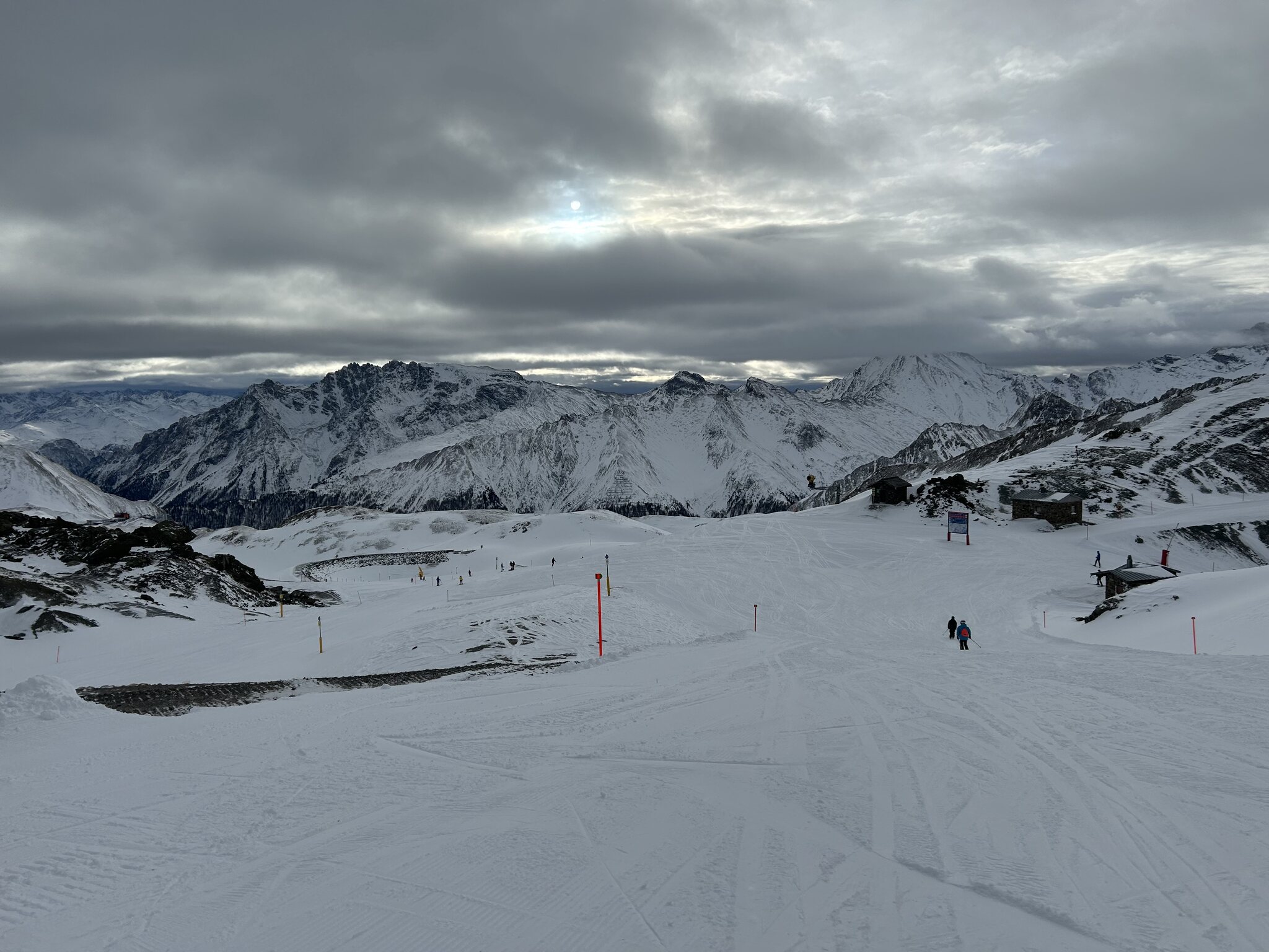 Kurzes Sonnenfenster… mittlerweile extrem viel los weil Pisten Fläche fehlt und Varianten