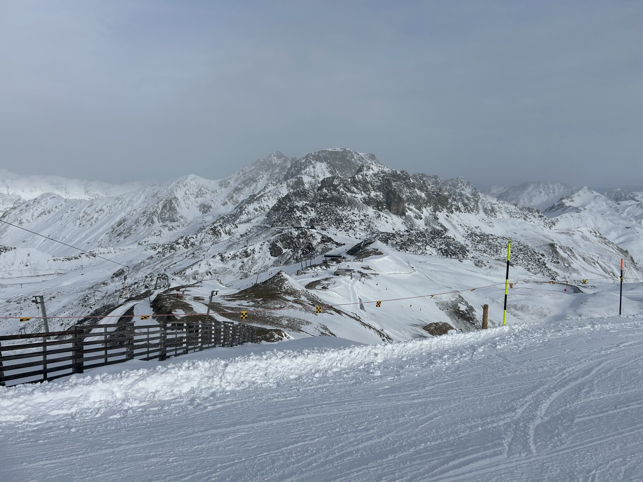 Mein Fazit des heutigen Tages: Es war einer der schlechtesten Ischgl Tage. Der wenige Neuschnee von gestern hat die Situation nicht verbessert, eher noch verschlechtert, weil er die kompakten Kunstschneepisten ruiniert hat.