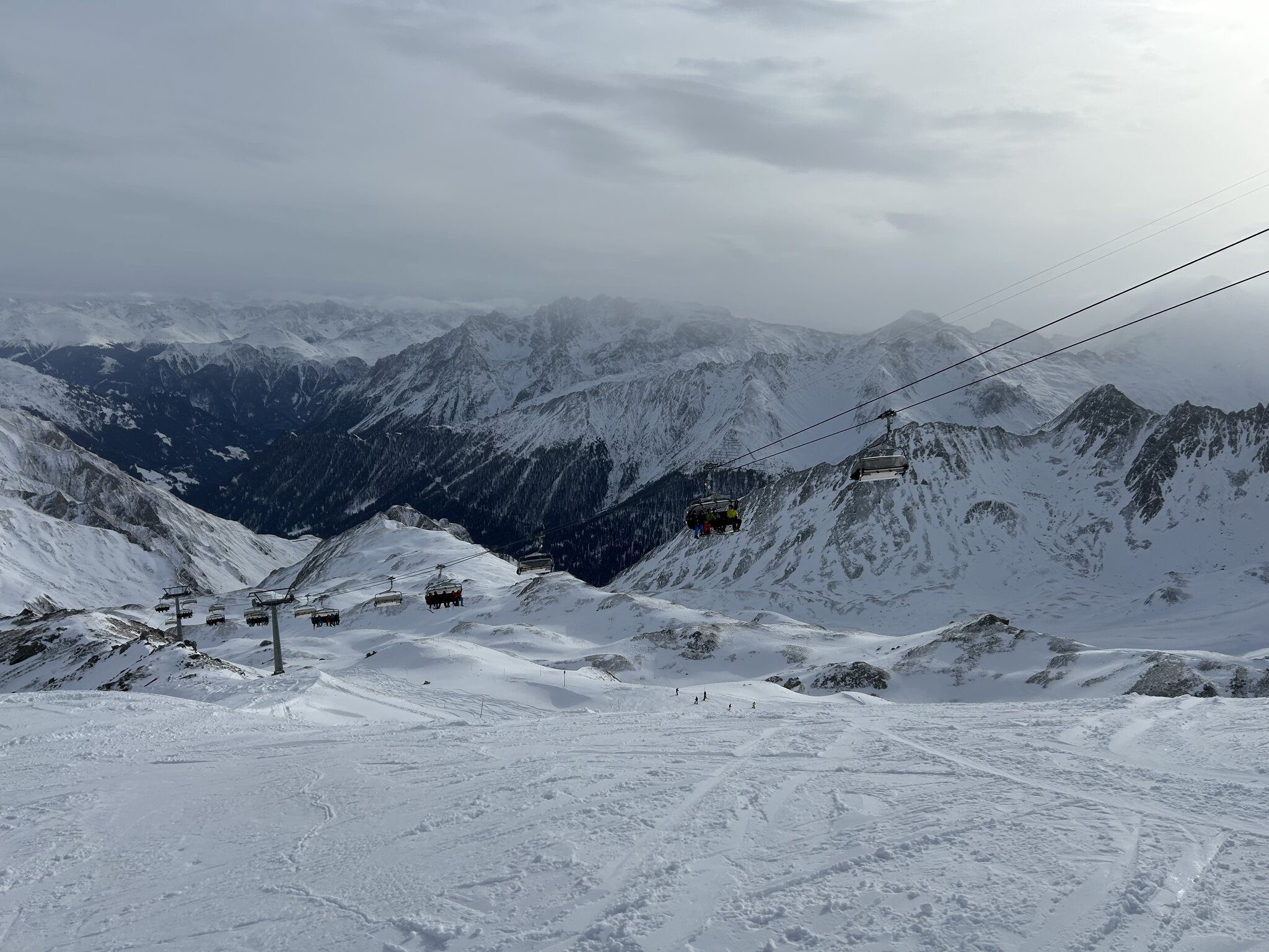 Die ersten 2 Stunden waren gut. Pisten in Ischgl sehr unruhig, die 4 und 4a ein Acker, kein Vergleich zu den letzten Tagen. Warum?