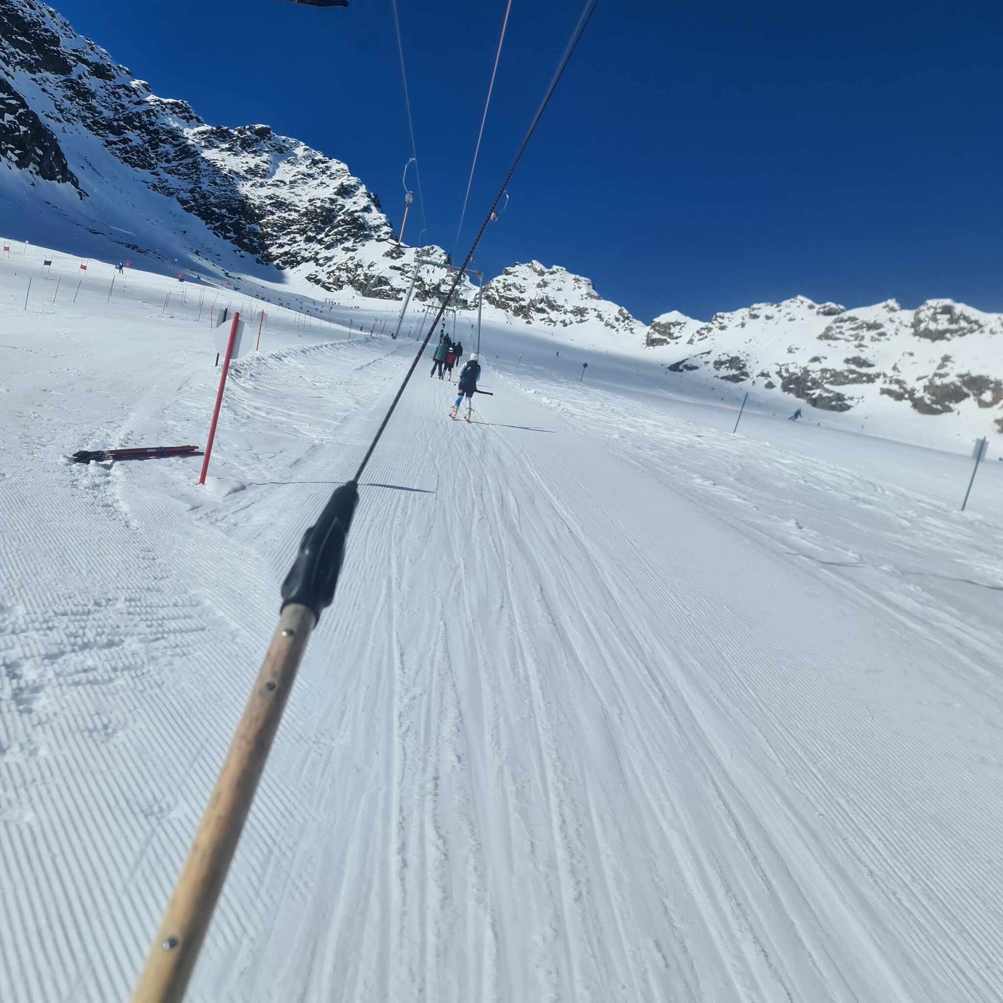 Nun ja, ich habe Euch nicht wirklich genau zugehört, sondern halt nur wenige Wörter aufgeschnappt. Bis ich dann realisiert habe, dass Ihr es gewesen sein könntet (-> ich Deinen Livebericht gesehen habe), war es 15:30 Uhr im Sessellift Gletschersee und ich las:
