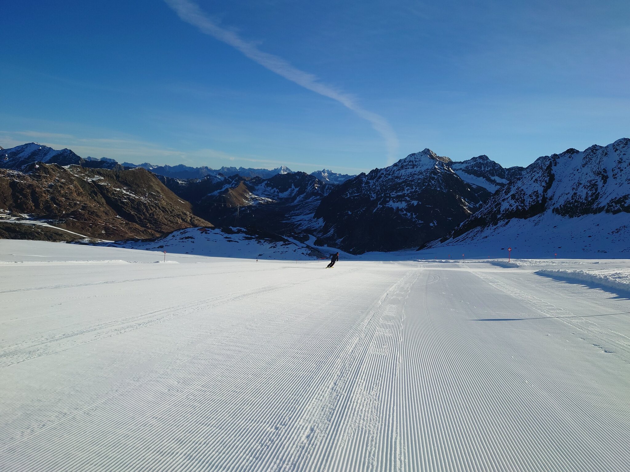 Die Renngruppen haben wieder mal fast den ganzen Wildspitzhang gekapert und im Gelände ging natürlich gar nix - das ist ja das Übliche. Deswegen treibt es mich im Herbst eh nicht so oft auf die Gletscher.