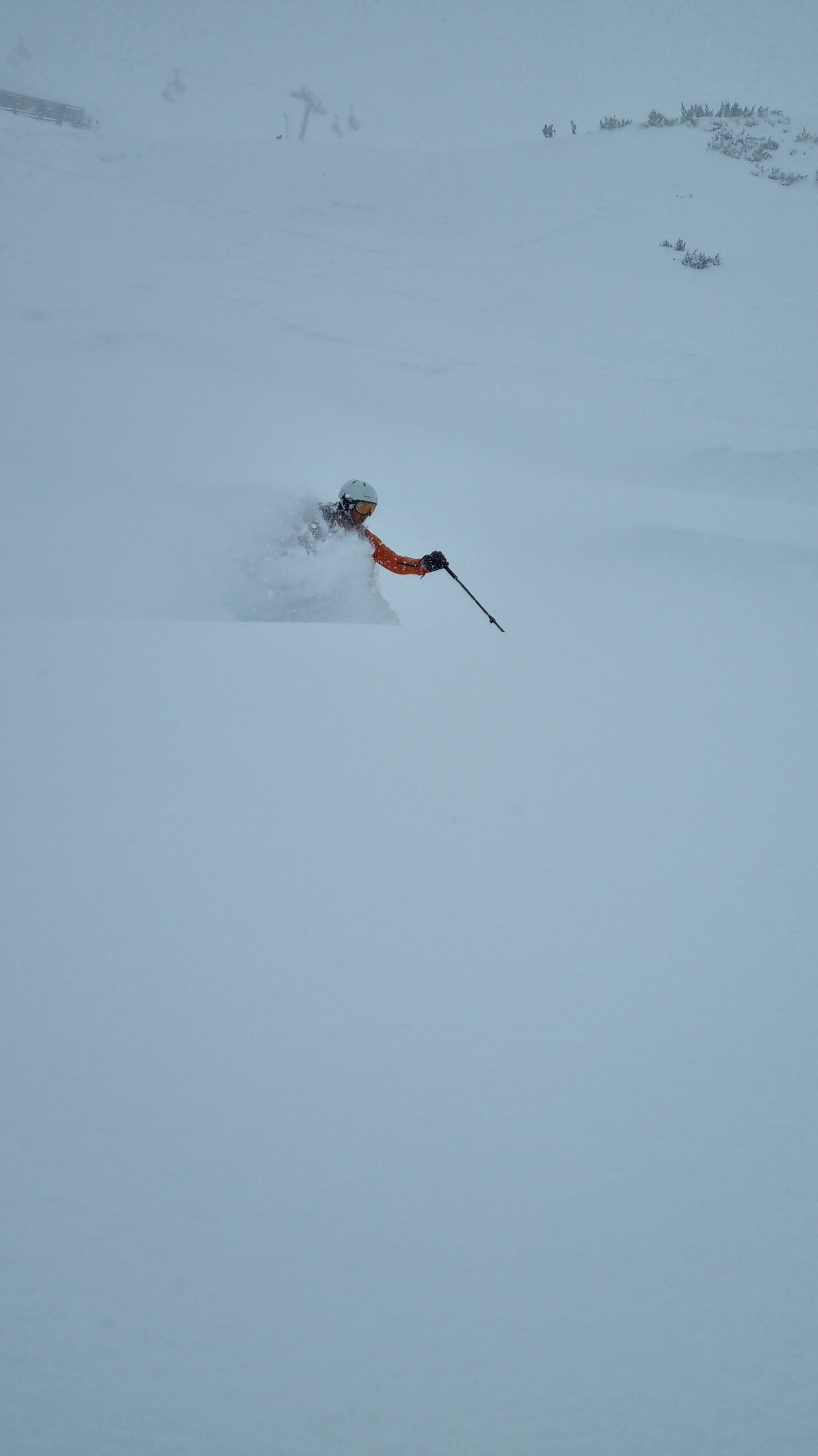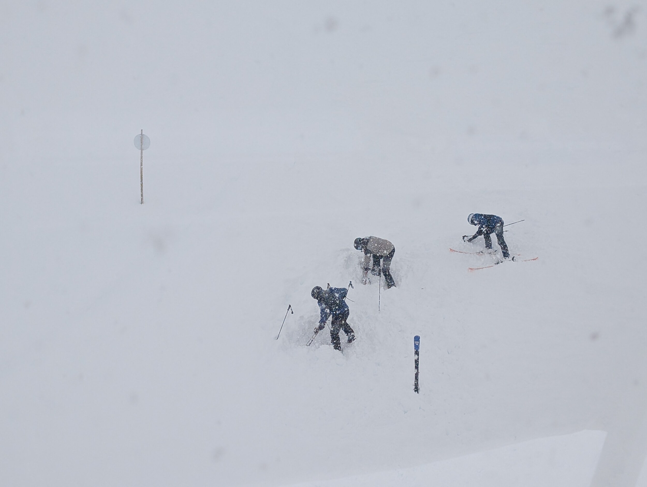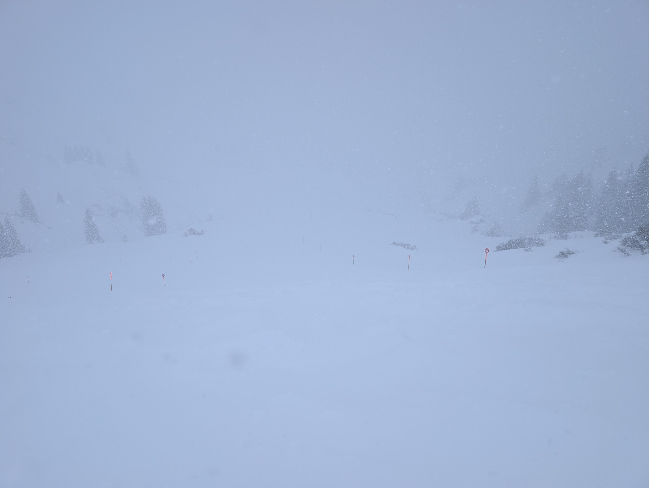 Der Schnee war heute sehr pulvrig und eigentlich ein Traum zu fahren. Stellenweise hatte es für mich halt einfach zu viel (Skis haben sich eingegraben), und das stürmische Wetter und fehlende Sicht haben es nicht leichter gemacht.