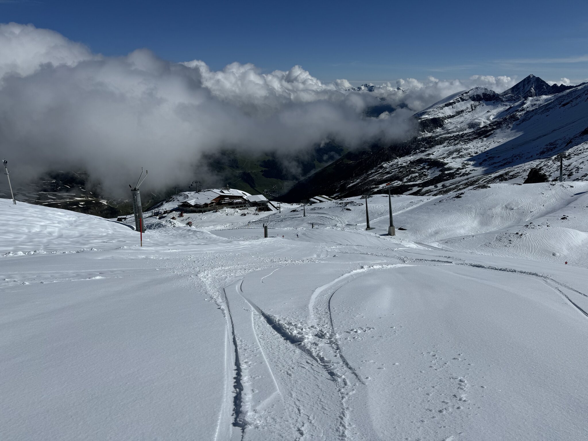Nach dem Mittagessen war oben wieder nebelfrei, und ich habe noch die zwei fehlenden Pisten auf dem Olperer gemacht, die am Morgen besetzt waren.