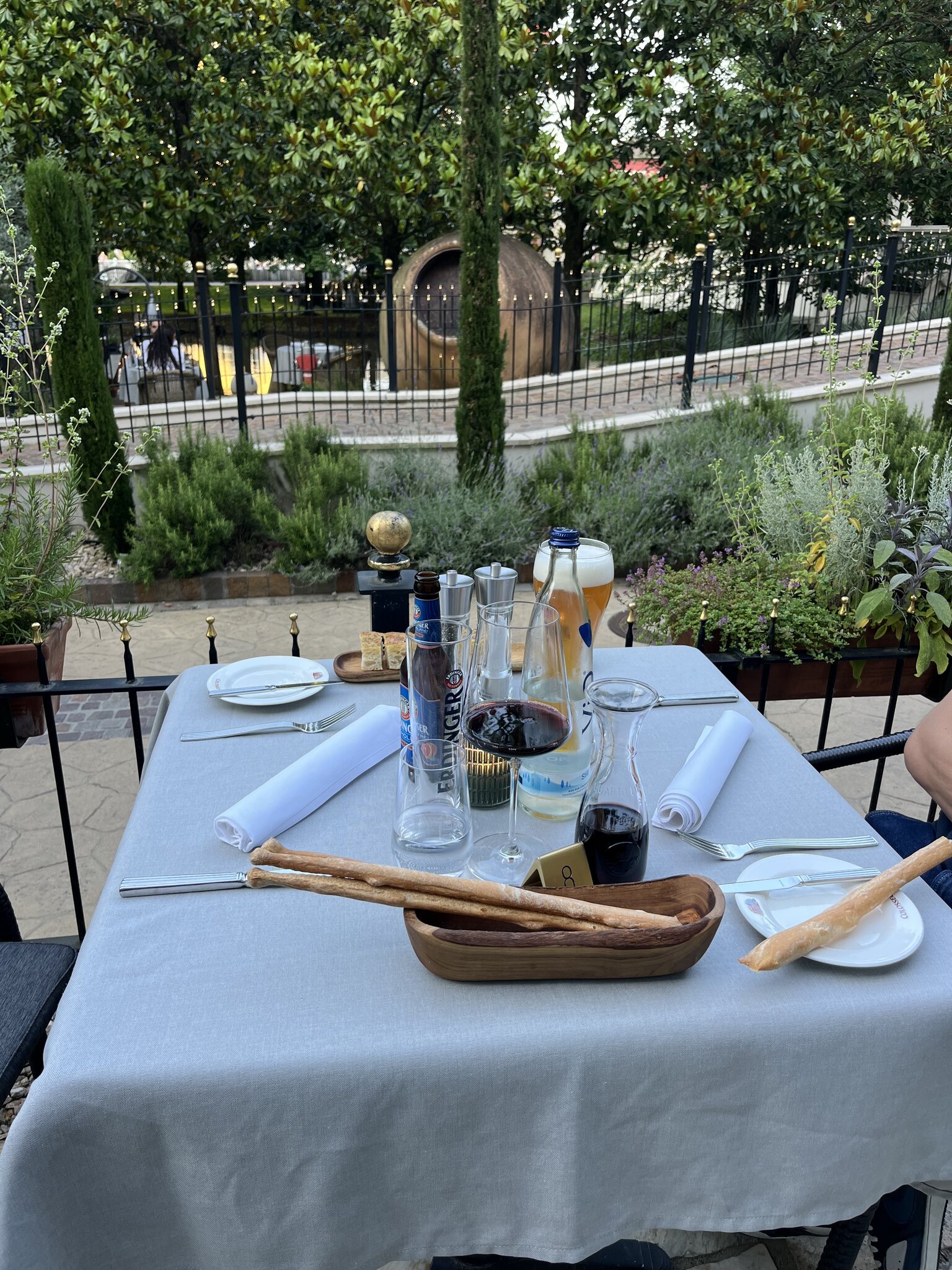 Dazu ein Weissbier und später ein Glas Primitivo, der etwas zu warm war und nicht so überzeugen konnte.