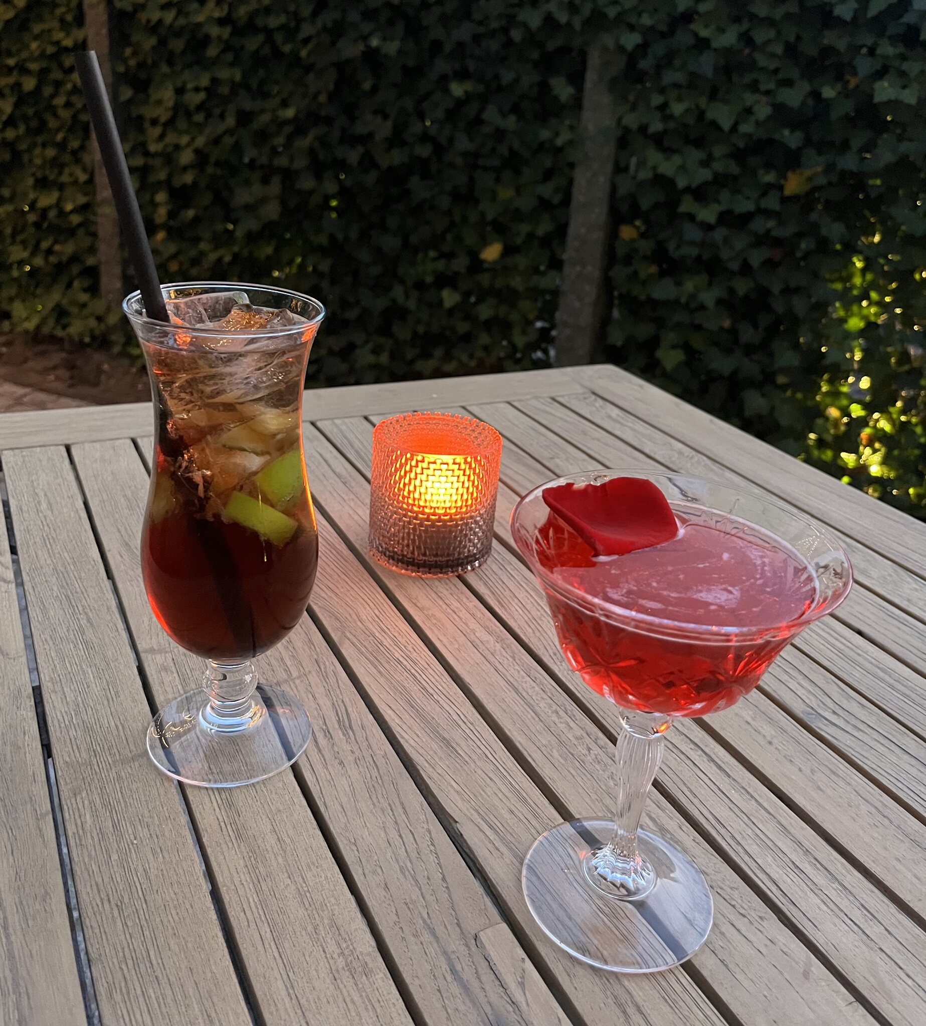 Heute Abend Galadinner; mit einem Johannisbeer/Lavendelspritz beim Cocktail-Empfang ging es ordentlich los