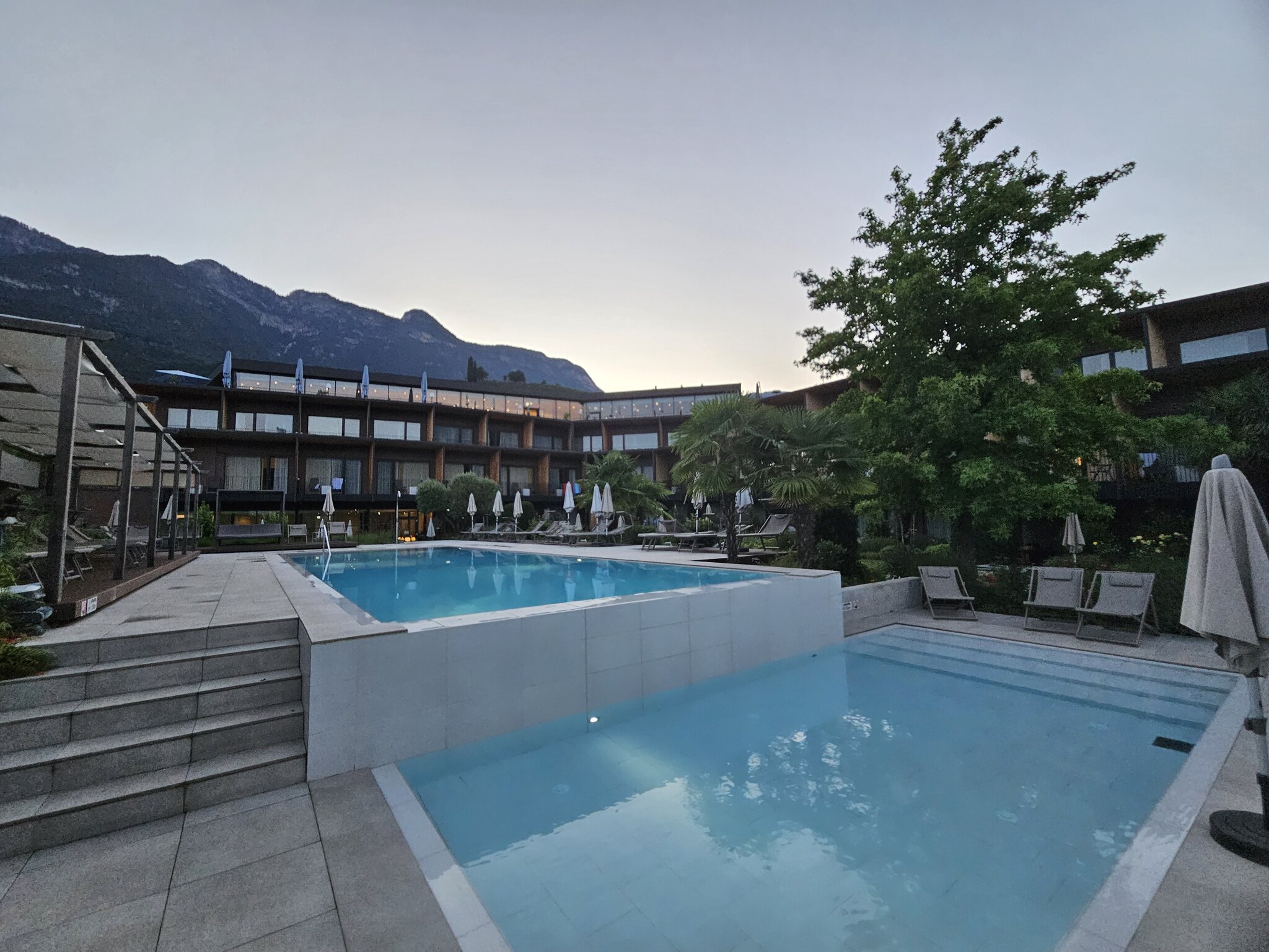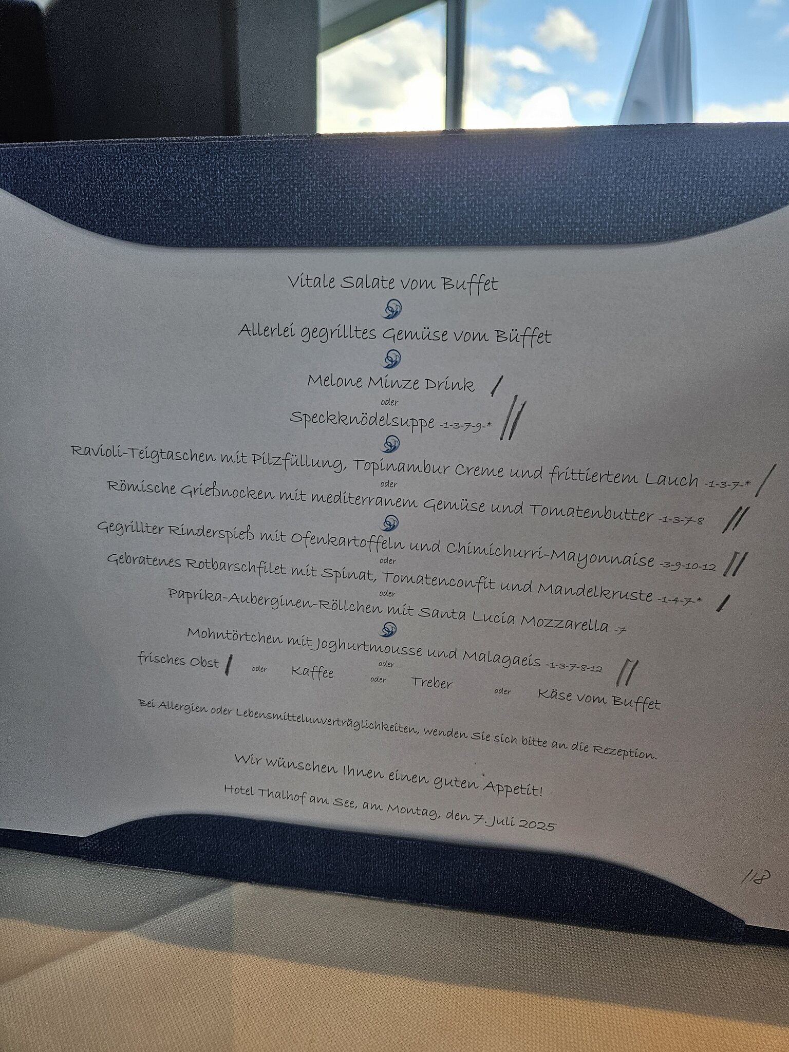 Danach noch eine Runde zum See und jetzt Absacker auf der Hotelterrasse mit experimenteller Piwi-Weißwein-Cuvee. Braucht viel Luft, passt dann jedoch ganz ordentlich zum lauen Sommerabend, ohne dass ich es wiederholen müsste