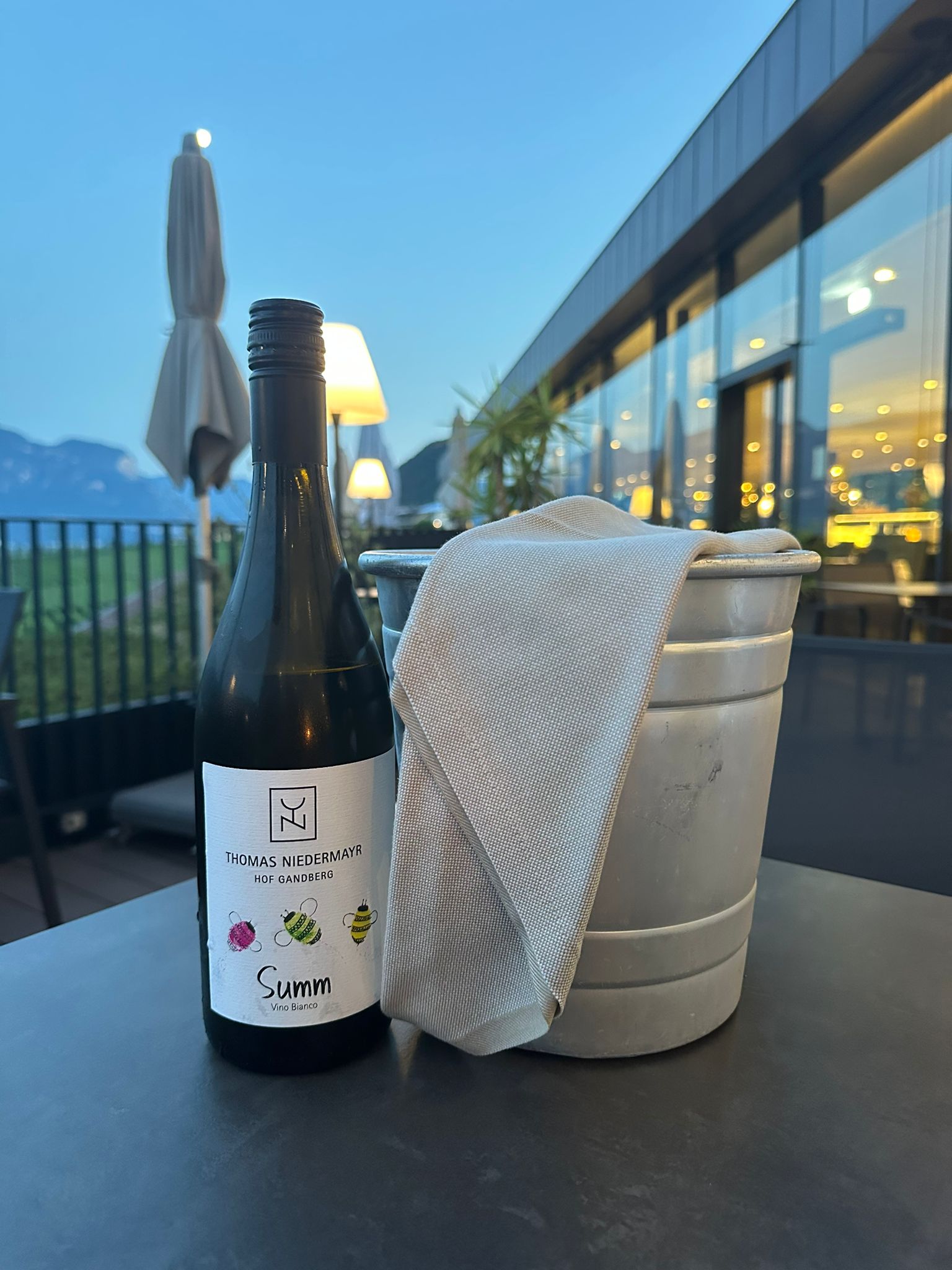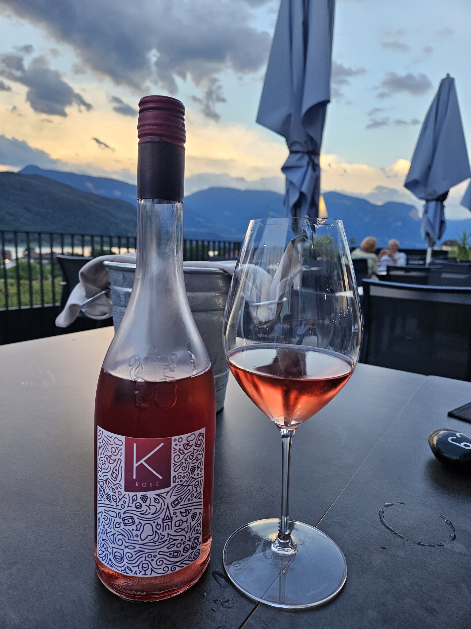 Auf der Terrasse gönnte ich mir noch einen Rosé von der Kellerei Kaltern, der für mich positiv in Richtung eines steirischen Schilchers mit Mandarinenzeste daher kam.