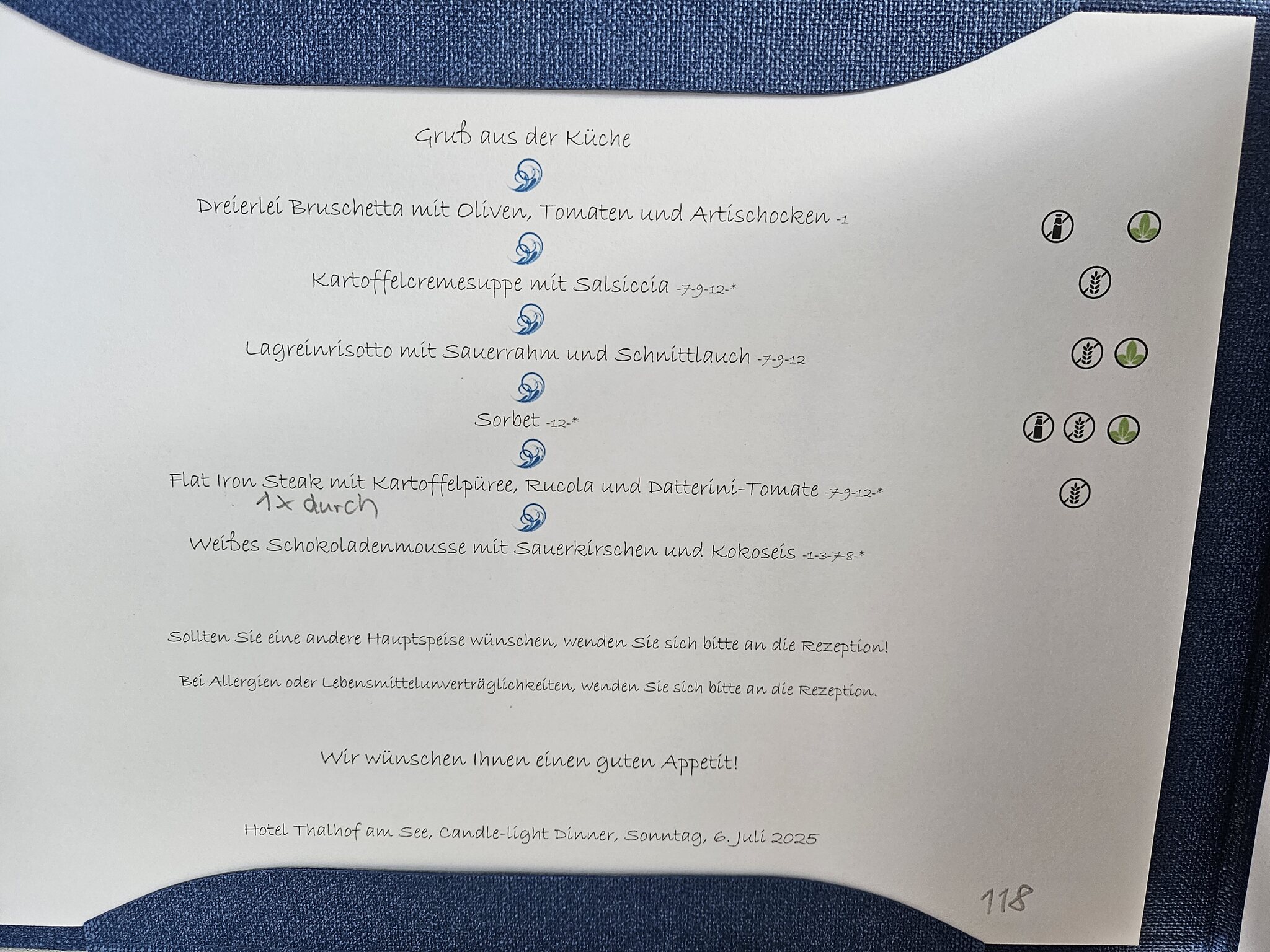 Das Menü war erneut sehr solide, auch wenn die Bruschette nicht geröstet waren und das Flat Iron Steak eher Richtung Roastbeef ging; aber gutes mit lecker Kartoffelpürree