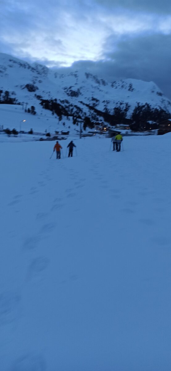 Danach haben wir eine schöne Schneeschuhwanderung unternommen und nach der Rückkehr gab es dann Glühwein und später leckeres Käse Fondue, Wein und Berg Salami.