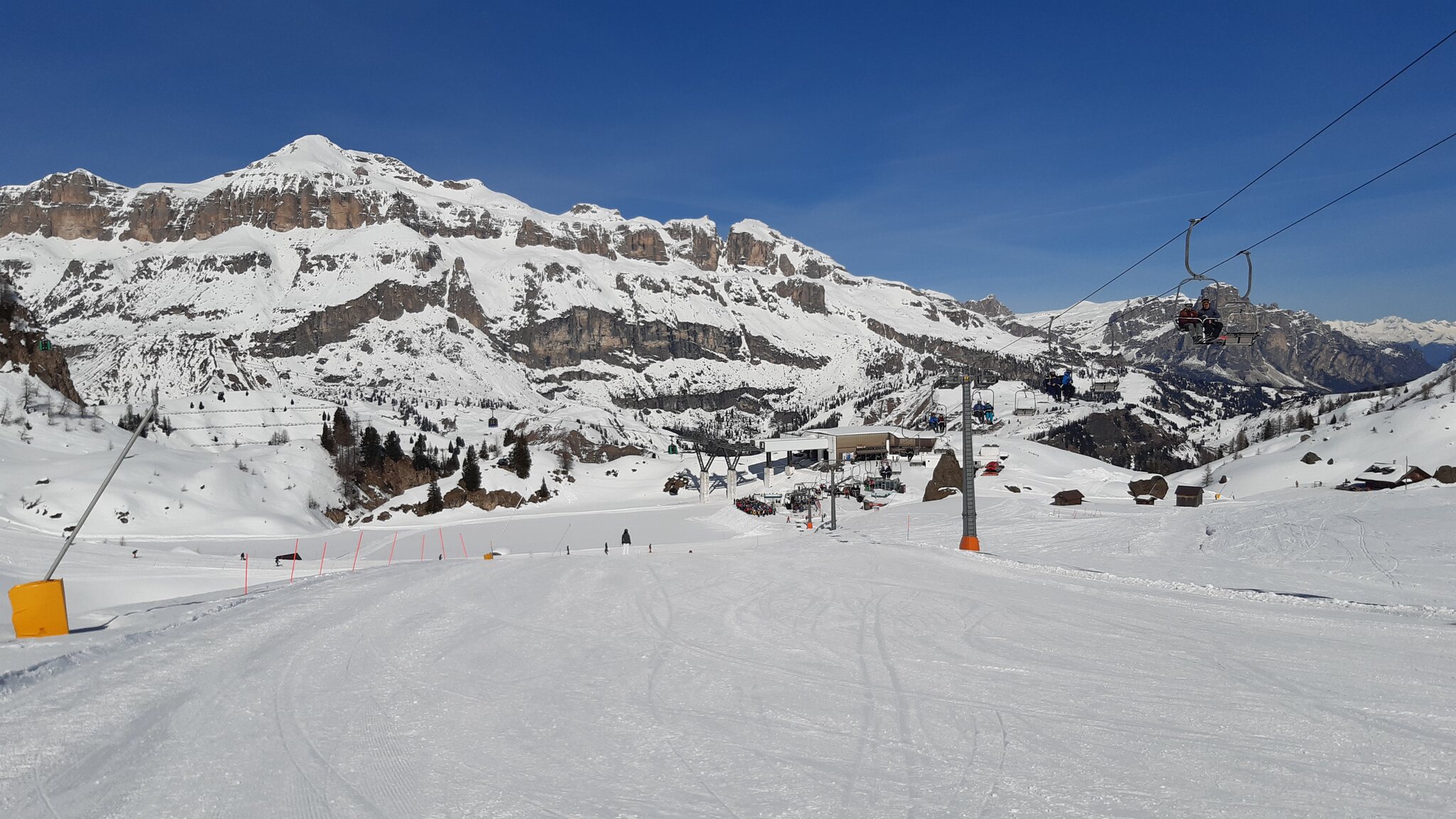 Die Verbindungsabfahrt von der 10EUB zur 6KSB war als einzige Abfahrt hier stellenweise voll. Um dann aber anschließend die schönen leeren Abfahrten fahren zu können, die nicht als Sellaronda ausgewiesen sind, war es mir das Wert.