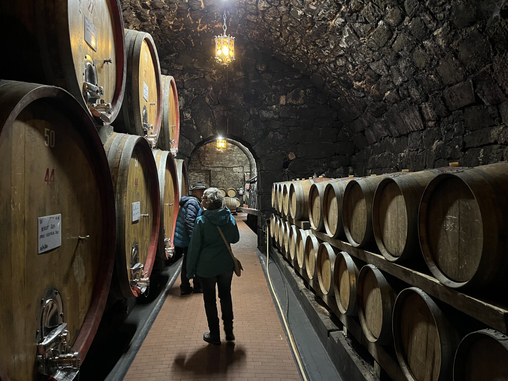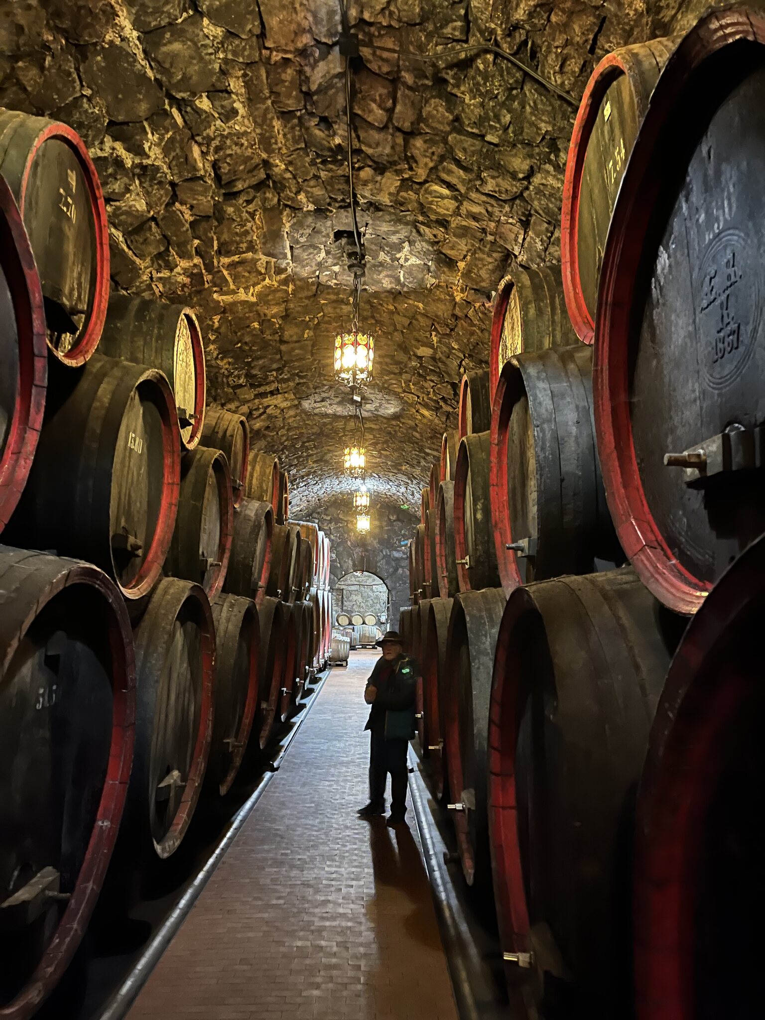 Dann ging es weiter durch den aktuellen Weinkeller. Diese Fässer werden nicht mehr genutzt