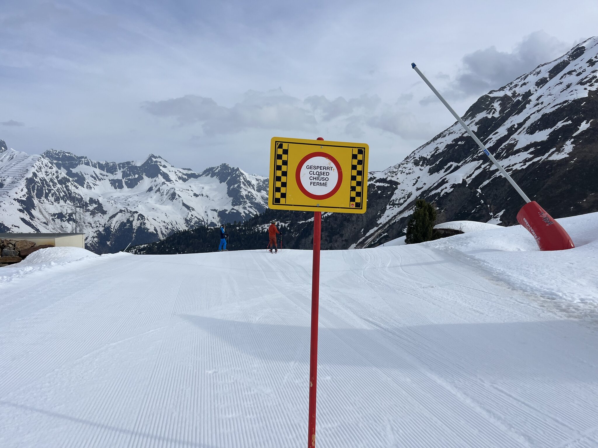 Ischg meldet um 8.35 Uhr viele geschlossene Lifte, aber eine unüblich offene Abfahrt zur Mittelstation. Hat mein Beschwerdemail was genützt? Später dann doch alles ausser PVG offen. Die Piste zur Vellileck-Bahn frisch präpariert, Lift fährt, aber ein geschlossen-Schild. Chaos pur am letzten Betriebstag… Edit 9.15 Uhr: