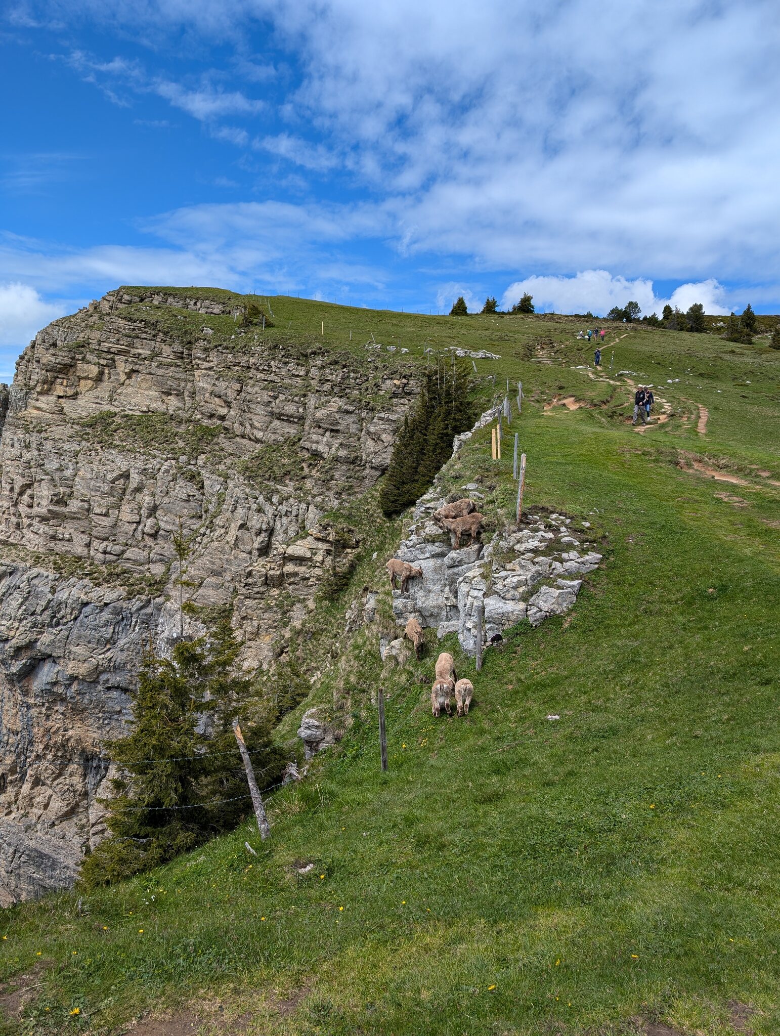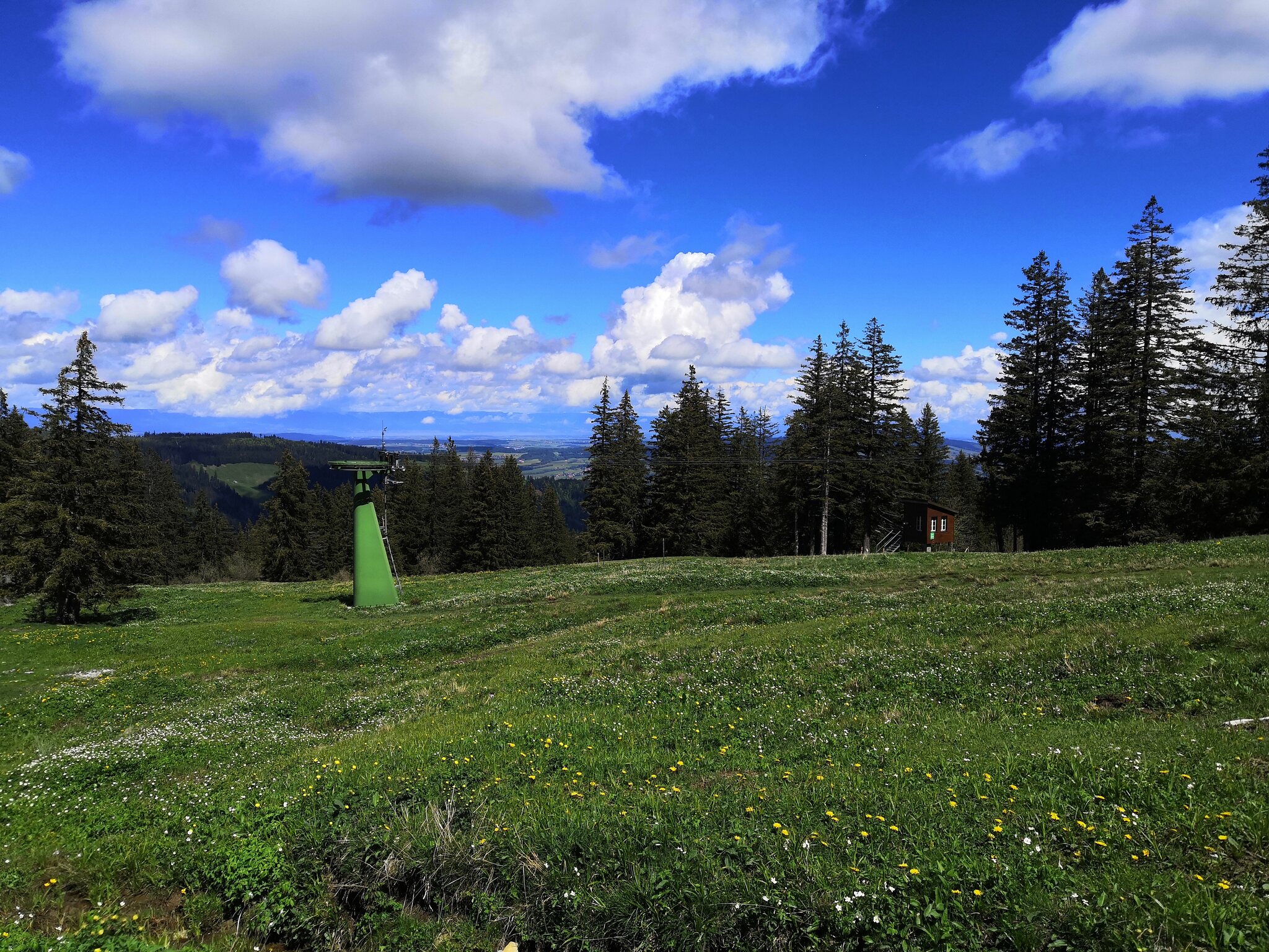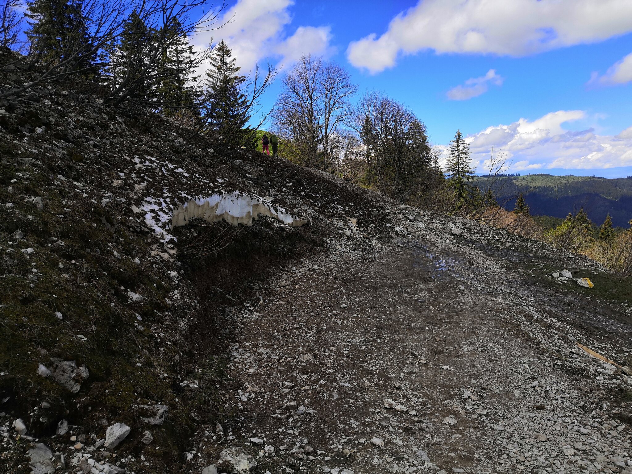 Um ca. 10:40 Uhr startete ich dann die heutige Wanderung. Zum Einstieg in die Wandersaison 2024 sollte es etwas Gemütliches sein, zumal mir die Schneesituation in der Höhe auch nicht ganz klar war. Zu Beginn verlief der Weg auf einer asphaltierten Strasse, anschliessend ging es dann über einen schmalen Pfad durch Wald und über Wiesen. Nach nicht einmal zwei Stunden erreichte ich die Mittelstation Plan-Francey vom Moléson. Überrascht war ich durch die neue Sesselbahn. Ich war zwar noch nie hier, aber einen Bahnneubau (bislang Skilift) hätte ich jetzt auf dieser Höhe nicht unbedingt erwartet. Es ist aber auch noch ein Biketrail (wahrscheinlich sogar mehrere) im Bau, daher macht es dann wohl schon eher Sinn.
