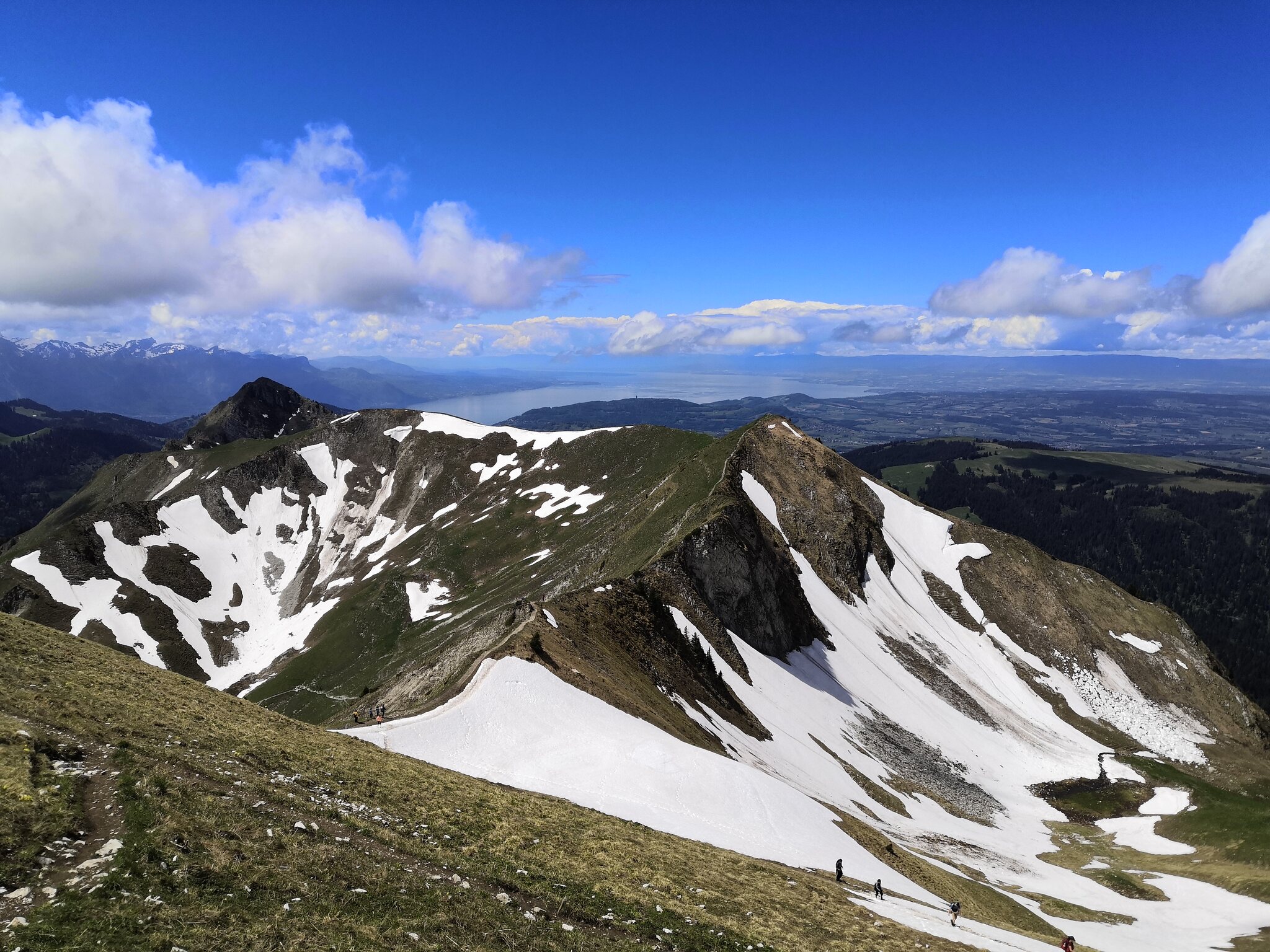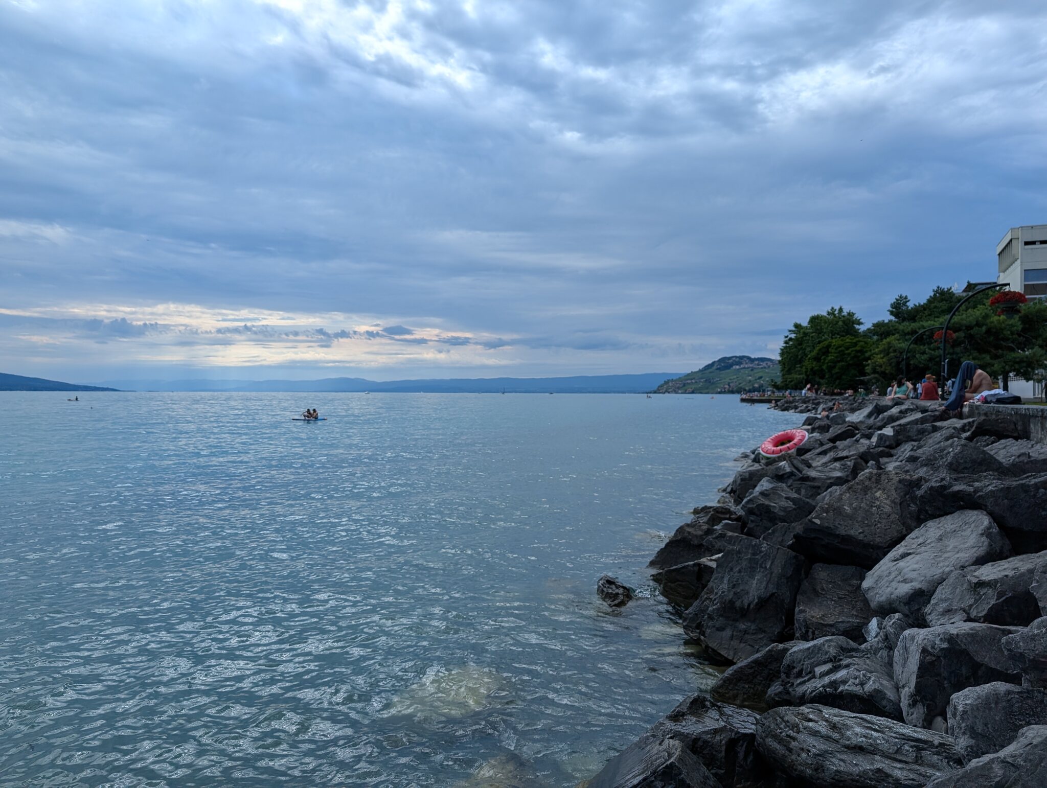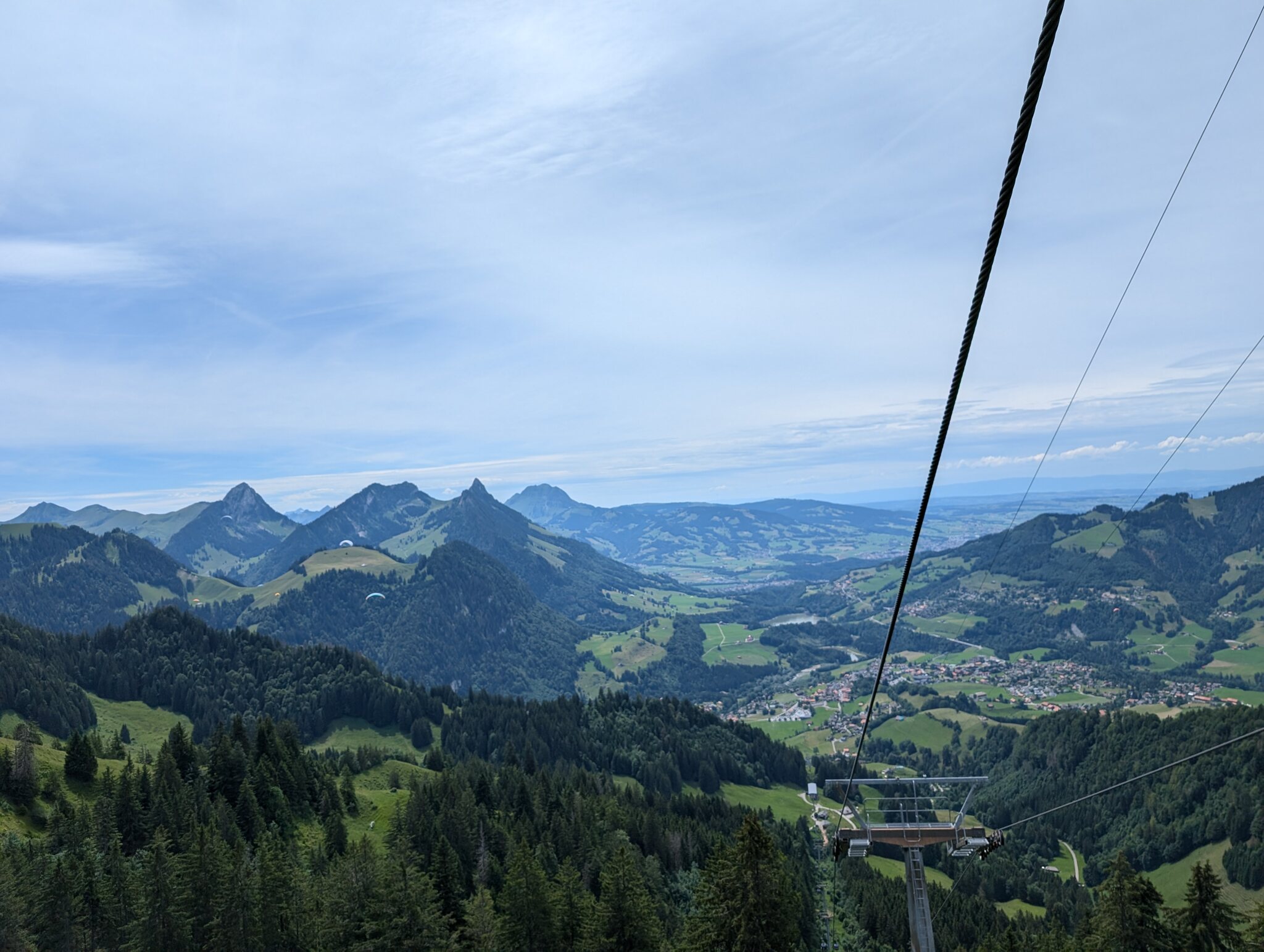 Oben angelangt folgt nicht etwa eine rassige Abfahrt. Aufgrund des ungünstigen Untergrunds musste auch hier abschnittsweise gestossen werden. Zur Wiedergutmachung entschied ich spontan, eine Bergfahrt mit der Gondelbahn Charmey einzulegen, sodass ich doch noch auf eine etwas spassigere Abfahrt komme. Währenddessen reizte mich der Gedanke, die Velotour noch bis an den Genfersee zu verlängern. Ich plante spontan bis Villars-sous-Mont zu fahren, dort auf den Zug zu wechseln bis Les Avants und dann noch die Abfahrt nach Montreux hinunter zu geniessen. Ich war aber deutlich zu früh in Villars-sous-Mont, sodass ich spontan mit dem Zug in die Gegenrichtung nach Châtel-St-Denis fuhr. Von dort ging es dann mit dem Velo hinunter nach Vevey, wo eine erfrischende Abkühlung im Genfersee wartete. Auf eine Zusatzrunde auf Les Pléiades verzichtete ich angesichts der fortgeschrittenen Zeit und der müden Beine.
