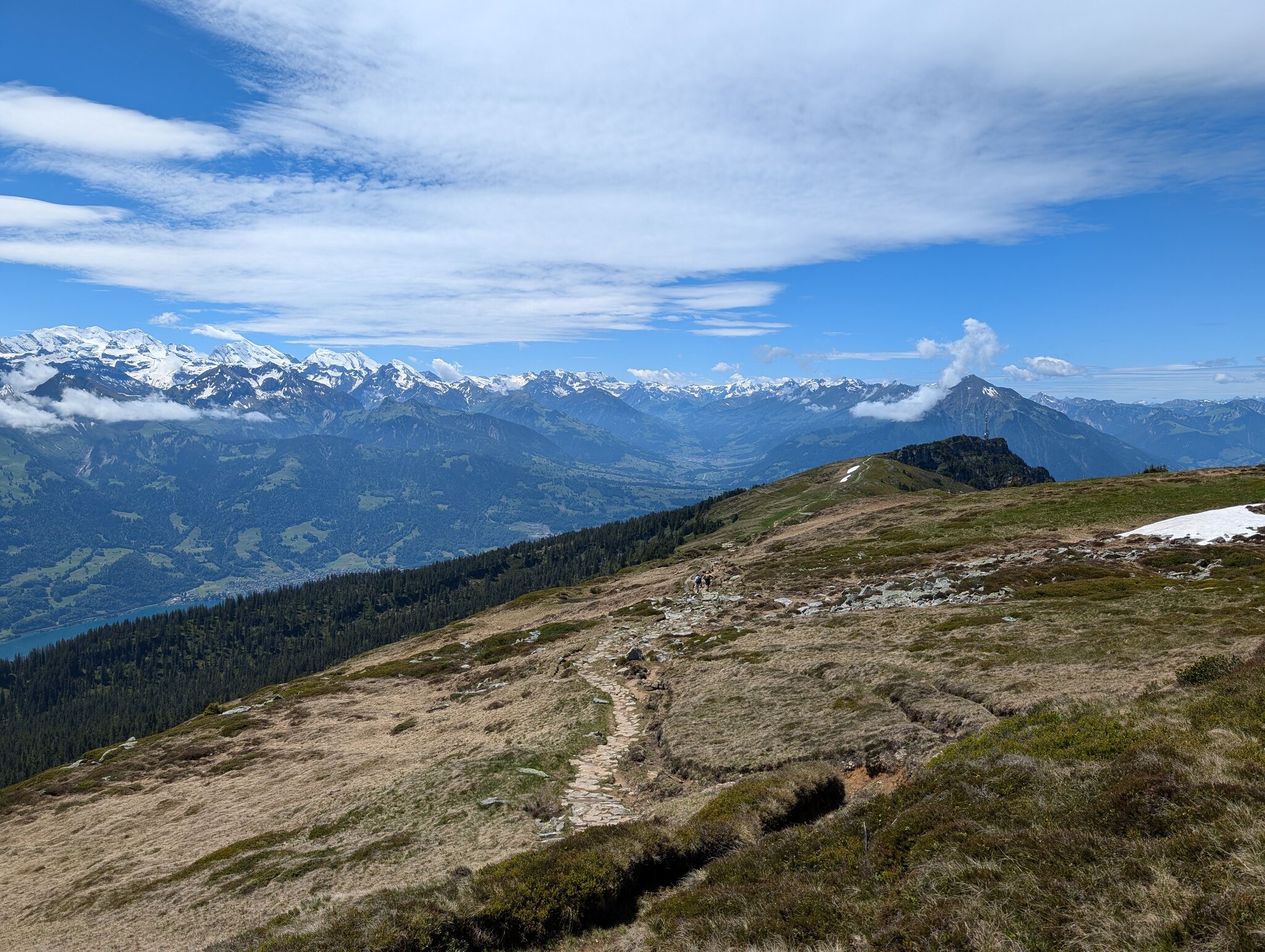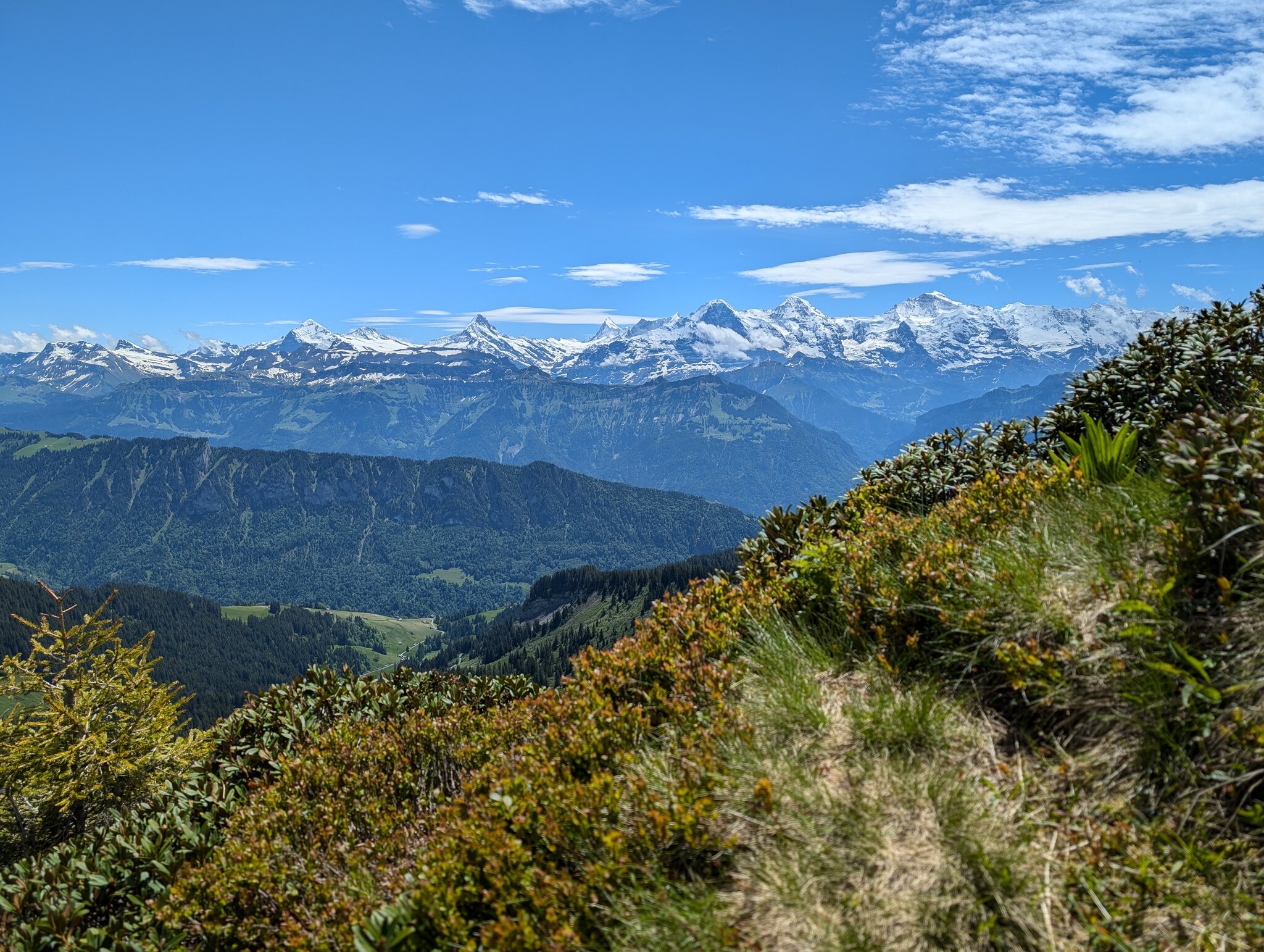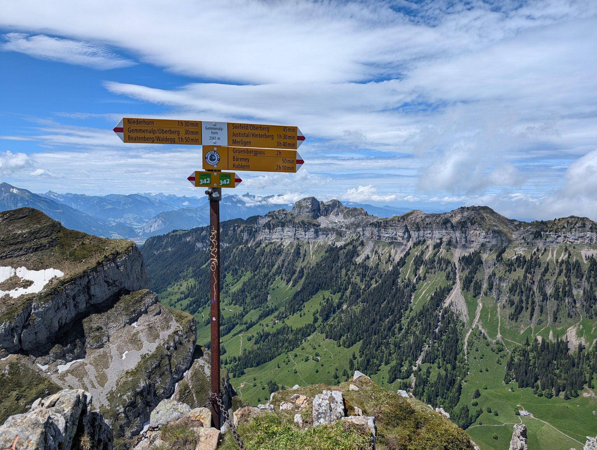 Vergangenen Sonntag machte ich mich erst etwas später auf den Weg. Los ging es kurz nach 10 Uhr am Bahnhof Bern. Nach einem Umstieg in Thun ging es im mehr als vollen Gelenkbus bis nach Beatenbucht und von dort via Beatenberg aufs Niederhorn. Los war, wenig überraschend, doch einiges. Angesichts der bereits fortgeschrittenen Zeit und der etwas unsicheren Wetterlage am späteren Nachmittag beschränkte ich mich auf eine eher kurze Runde dem Güggisgrat entlang bis zur Gemmenalp und dann über den unteren Weg zurück zum Niederhon. Insgesamt war ich gut 3 Stunden unterwegs inkl. einer längeren Mittagspause beim Gemmenalphorn.