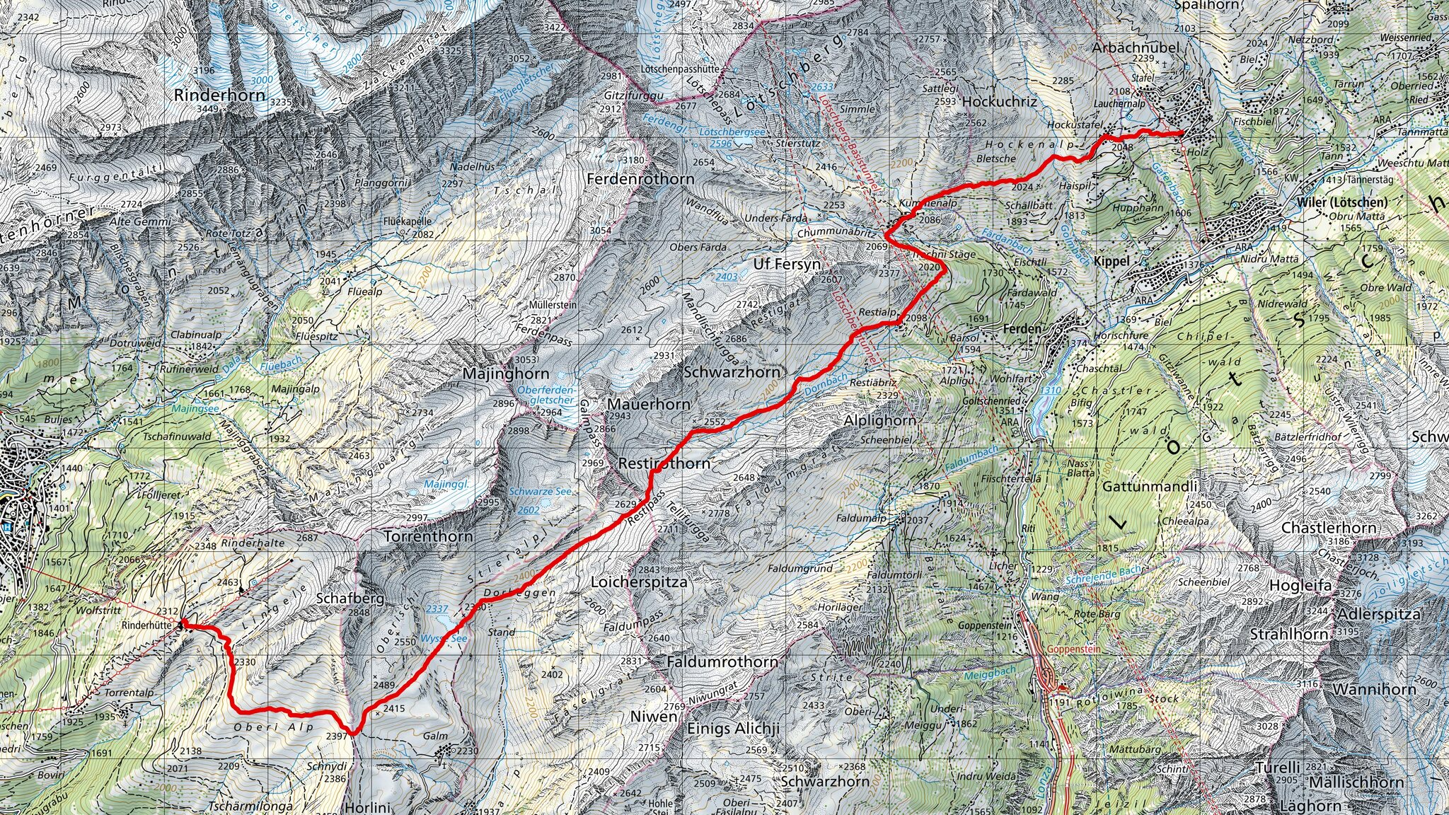 Durch zahlreiche Pausen traf ich kurz nach halb vier Uhr auf der Rinderhütte ein. Von dort ging es dann via Leukerbad, Leuk und Visp zurück nach Bern.