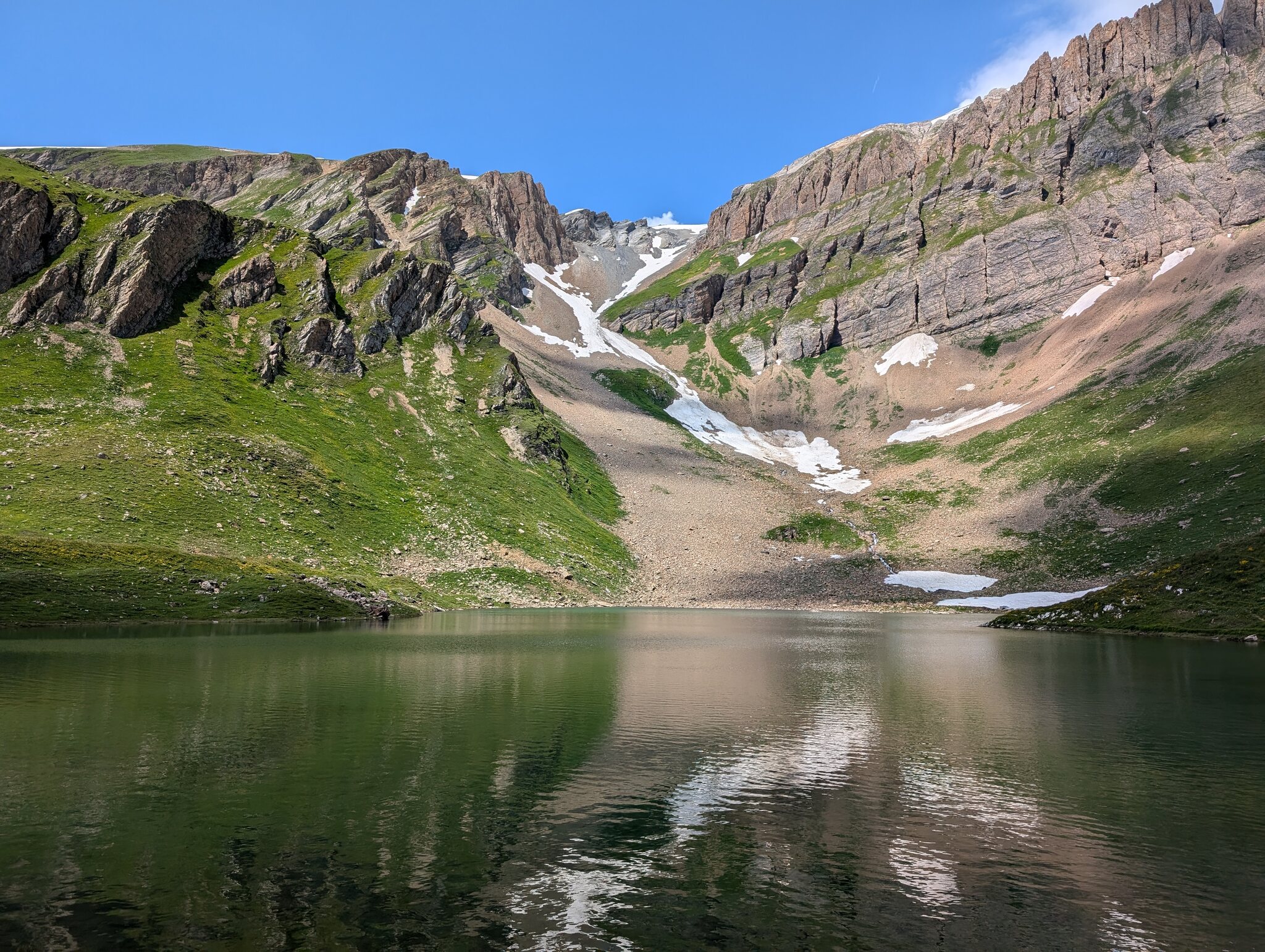 Zuerst verläuft der Weg auf mehr oder weniger gleich bleibender Höhe, bevor der Weg ab der Restialp dann ansteigt bis zum höchsten Punkt der Wanderung, welcher sich auf dem Restipass mit 2'629 Metern befindet. Anschliessend ging es wieder hinunter bis zum Wysse See. Dort hielt sich einige Leute auf, auffallend viele mit einem oder mehreren Hunde. Während einer kurzen Pause meinerseits löste sich unterhalb des Klein Torrenthorn noch ein Schneefeld und fiel gut hörbar Richtung Tal.