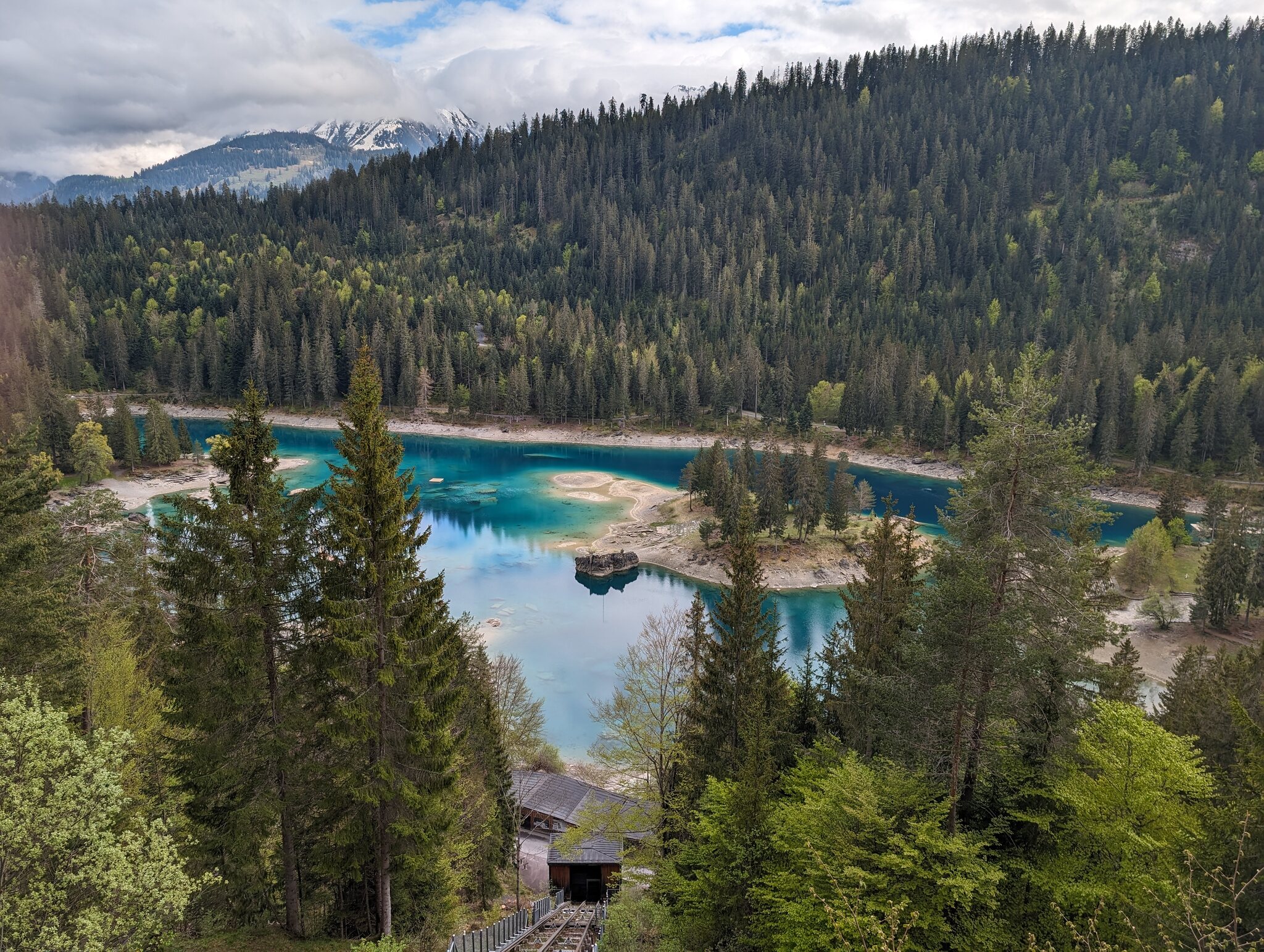 Der Caumasee ist etwas einfacher zu fotografieren. Wie man sieht ist das Wasser auch blau, wenn es bedeckt ist. Danach geht es wieder zurück, via Ballonwiese/Schulhaus zum Coop und dann direkt die Treppen hoch und rüber zum Hapimag. Es ist schon eine riesige Aufwertung, dass man nun so einfach Einkaufen kann.