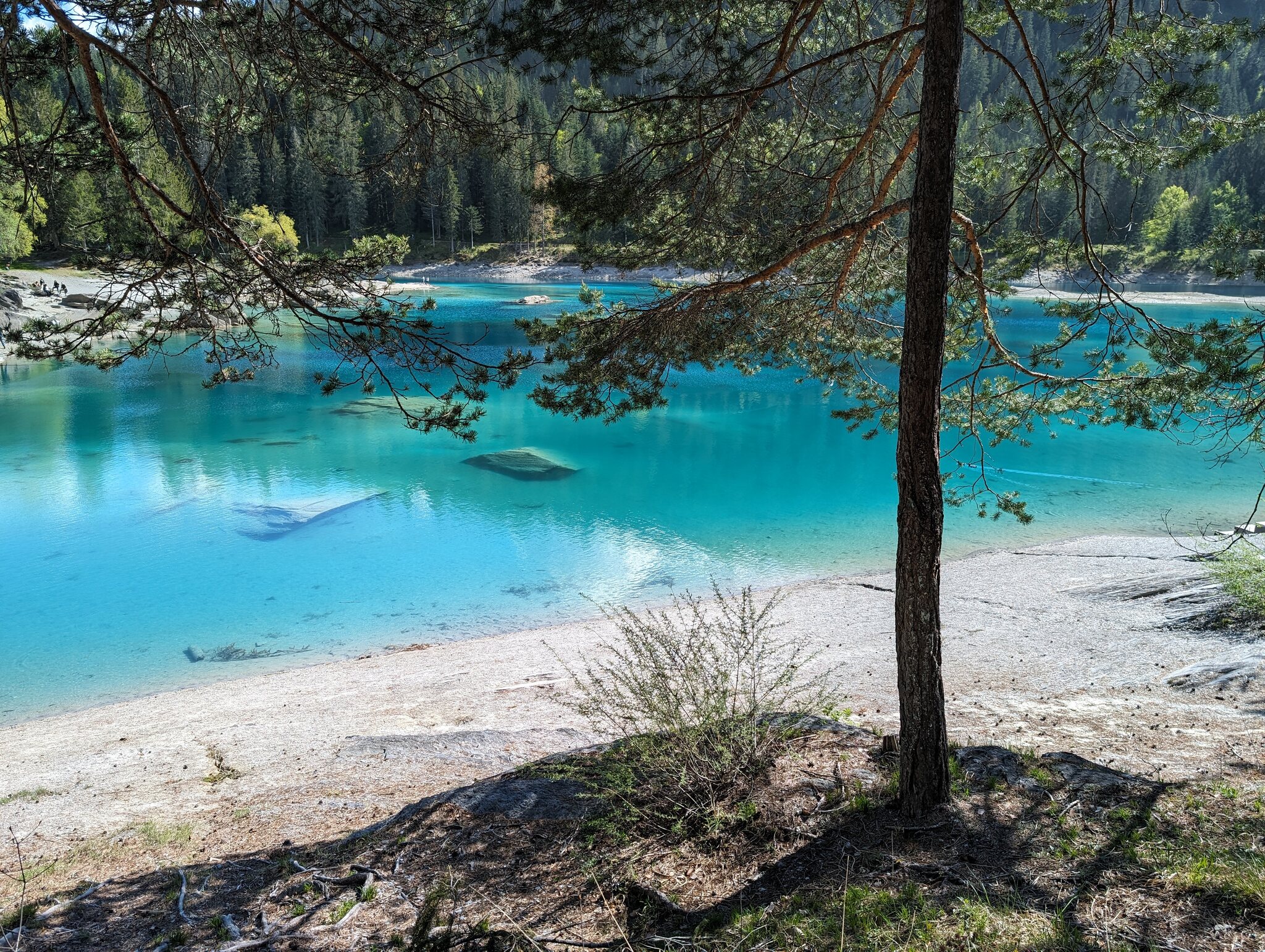 Am Minigolf ist leider das Restaurant zu (Pächterwechsel). Also verpflegen wir uns aus dem Rucksack und wandern unten durch zum Caumasee.