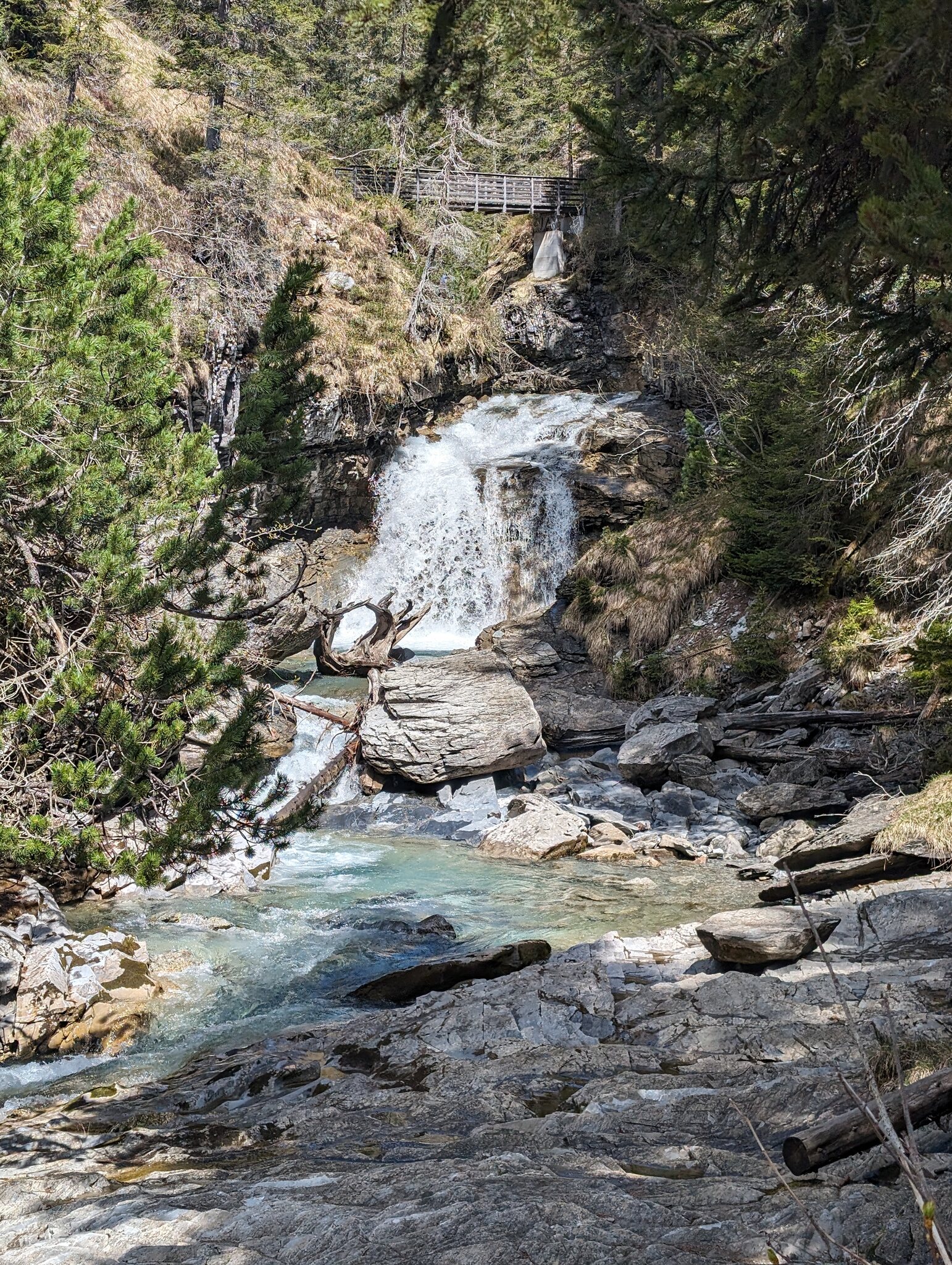Oberhalb dieser Querung wird es - für mich überraschenderweise - noch einmal richtig interessant. Es folgt eine teil über Bretter und dann nochmal ein Wasserfall mit Querung über eine Brücke.