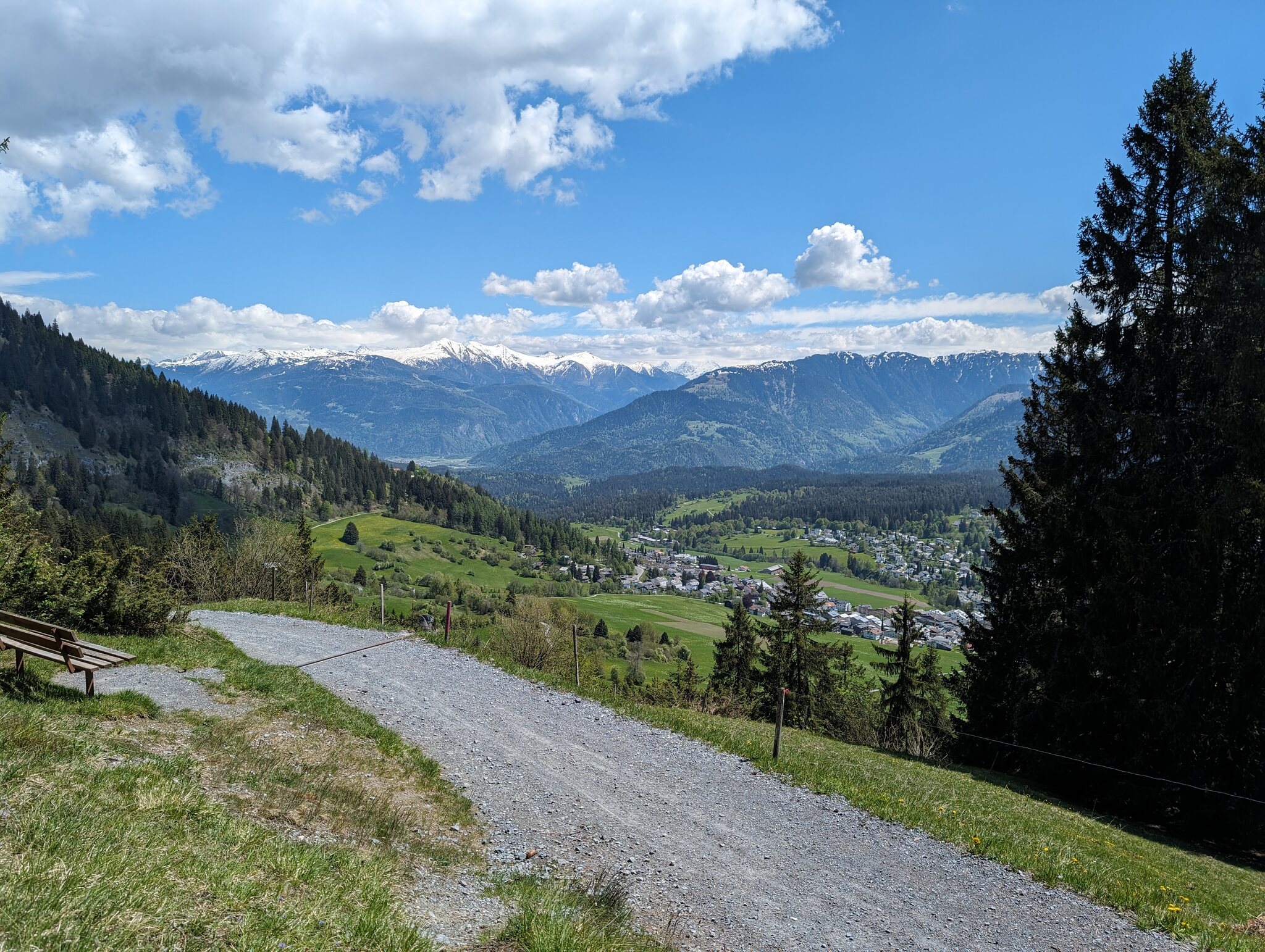 Wir nehmen den Bus nach Falera um den Panoramaweg nach Larnags zu gehen. Den zweiten Teil in Laax haben wir bereits vor einem Jahr an Pfingsten gemacht, damals nach dem wir den Baumwipfelpfad gemacht haben.