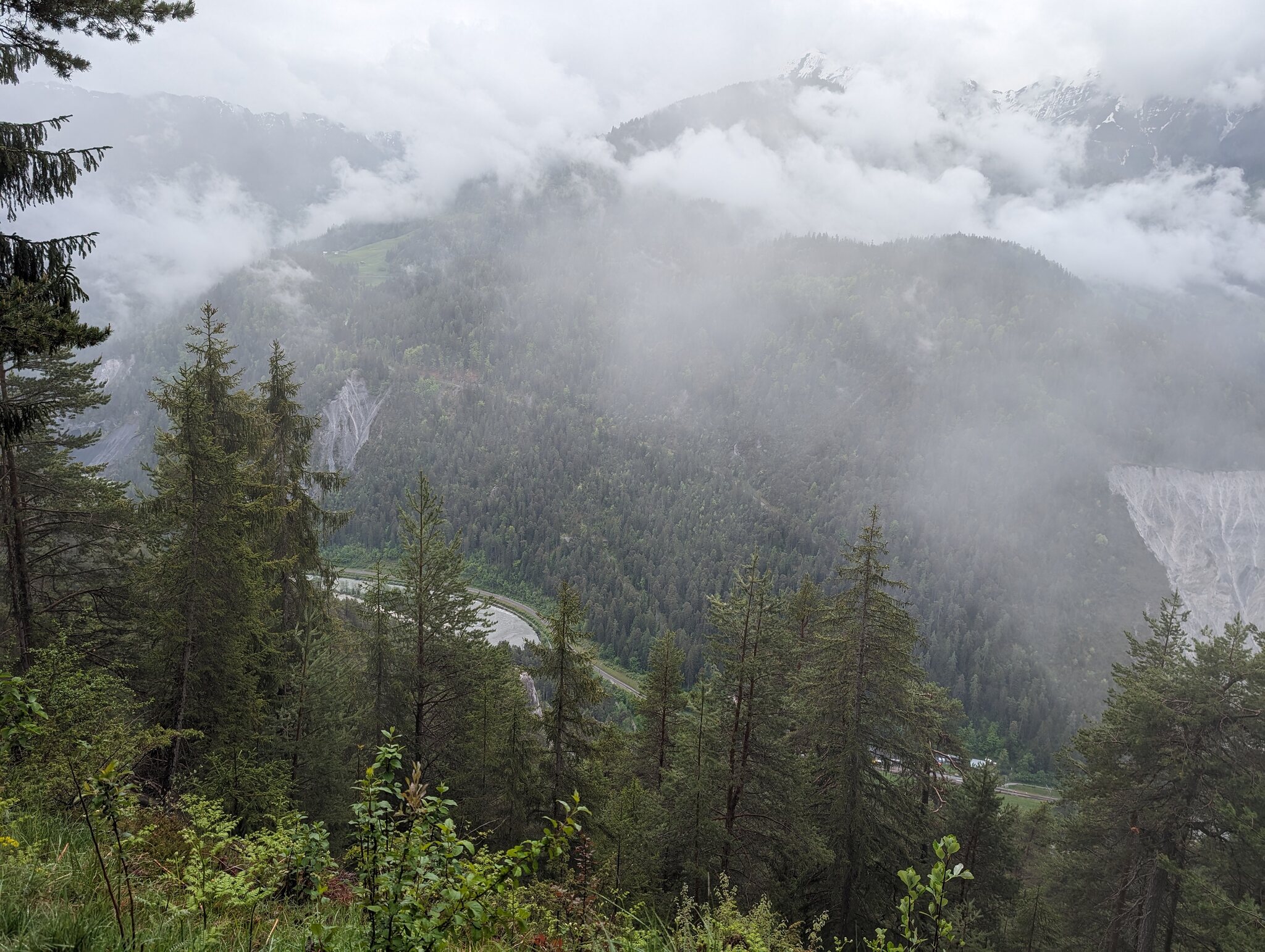 Auf den Montag nach Auffahrt war schon lange Regen angesagt, und die Wetterberichte stimmen zur Zeit recht gut. Daher habe ich für den Montag die Wanderung nach Conn eingeplant. Denn im grossen Wald des Flimser Bergsturzes kommt es weniger darauf an, ob es regnet als auf anderen Wanderungen.