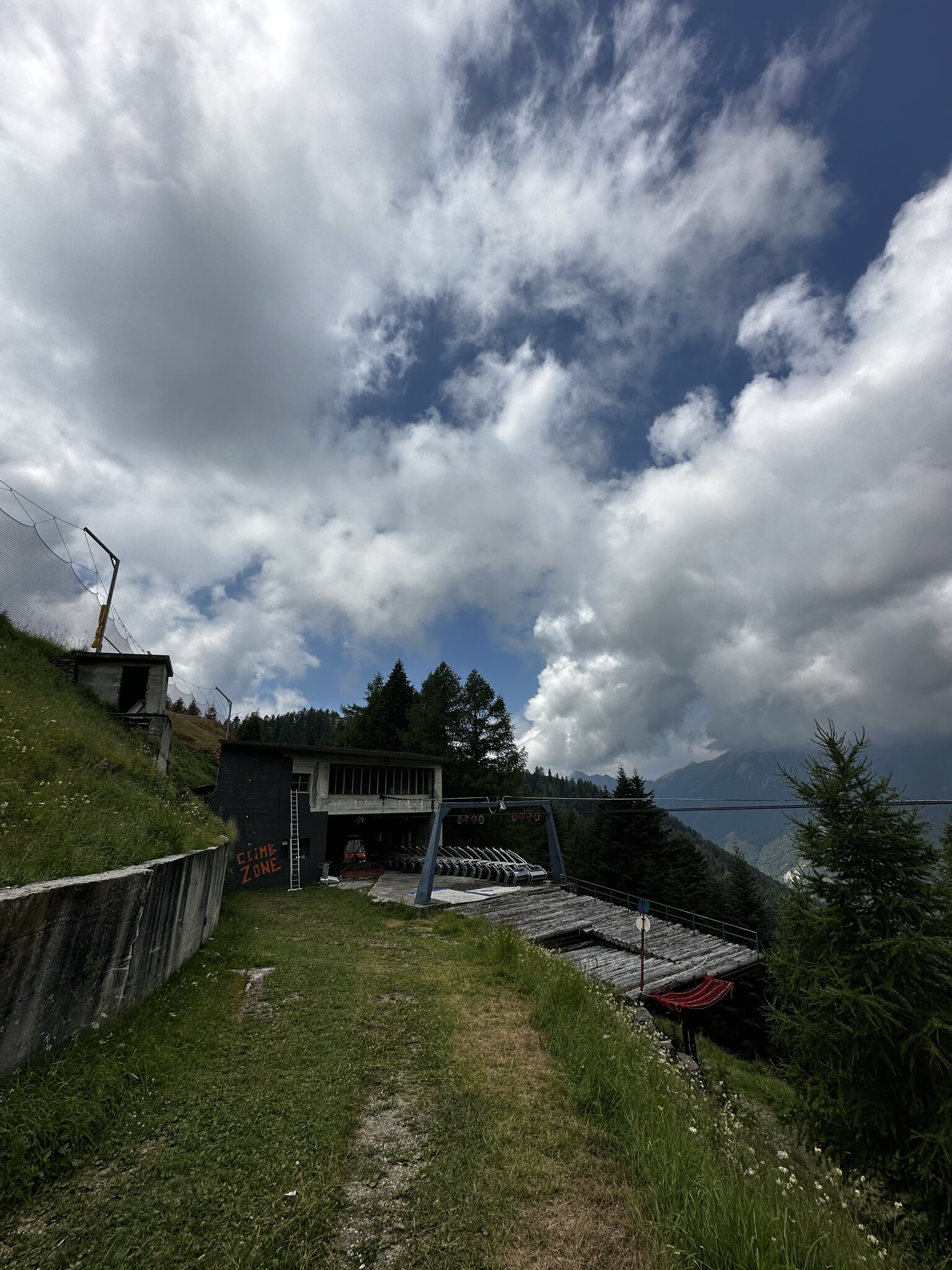 Die Talstation ist als einfache Tunnelröhrenstation ausgeführt und befindet sich auf dem Dach der alten Bahn. Ehrlich gesagt, schaut das ziemlich stylisch aus. Denn die Strukturen der alten Talstation werden durch die Schlichten Tunnelröhren ganz toll ergänzt. Keine Brutale Glasverkleidung. Alles schön im klassischen Lock. So solls sein. Diese war damals eine Eiergondelbahn "Ovovia" aus dem Hause Ceretti Tanfani, eine Rarität, den dieser Hersteller war vor allem in Sachen Bau von Pendelbahnen und auch Schleppliften tätig.