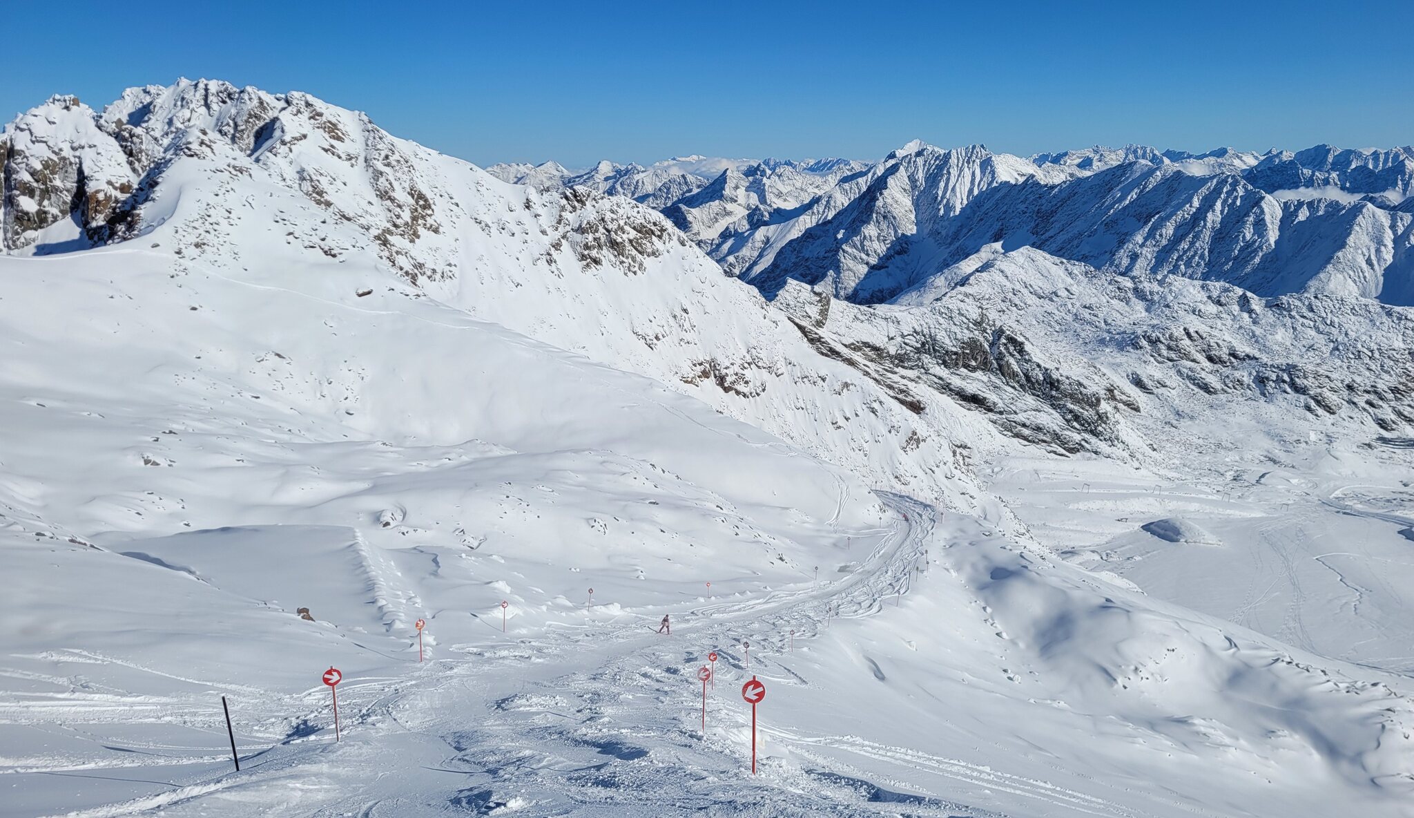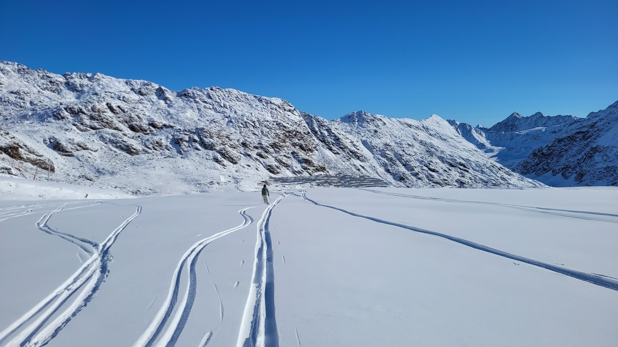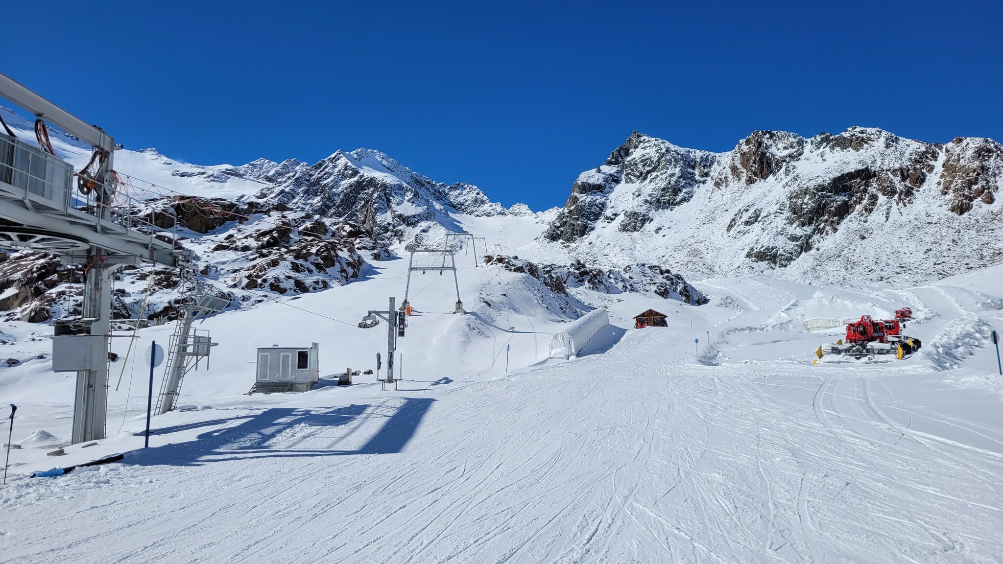 Das Wetter ist sensationell, freier Blick bis zur Zugspitze (hinten links): Powder-Hang neben der Piste: Der Hang hat in der Mitte Spalten, die aber markiert sind. Unterhalb davon kann man auch noch gut offpiste fahren: Und dann bis zum Skilift weiter cruisen: Zieleinfahrt: Keine Rucksack-Blockade an der Talstation: Piste 28 ist eigentlich für Teams reserviert, neben der Piste geht aber auch noch gut: Die Zufahrtspiste weiter oben: Die schwarze Piste hat oben mittlerweile ziemlich viele Haufen: Blick zur Mittelberg-Zwischenstation: Und auf die Bergstation: Ein Wildspitze-Bild darf natürlich auch nicht fehlen: Die SL-Trasse: Kurz nach 12h habe ich Schluss gemacht, Skibetrieb ist sowieso nur bis 13h und die Hänge sind mittlerweile ziemlich ausgefahren. Für On Piste war das heute eher kein guter Tag, im Gegensatz zum Hintertuxer wurde hier am morgen nicht nochmal präpariert. Aber dafür bin ich offpiste auf meine Kosten gekommen. Ist eigentlich schon unglaublich, schon Ende September einen richtig guten Powder-Tag zu haben. Der Tagespass um 70€ war aber schon heftig teuer an der Kassa, hatte nicht vorher gecheckt, dass es online günstiger ist. Dafür habe ich dann nichts im überteuerten Gipfelrestaurant konsumiert, das Hotel hatte mir auch ein Lunchpaket mitgegeben. Vielleicht hätte ich heuer auch die TSC-Card nehmen sollen. Aber wie auch immer, es hat sich gelohnt heute.