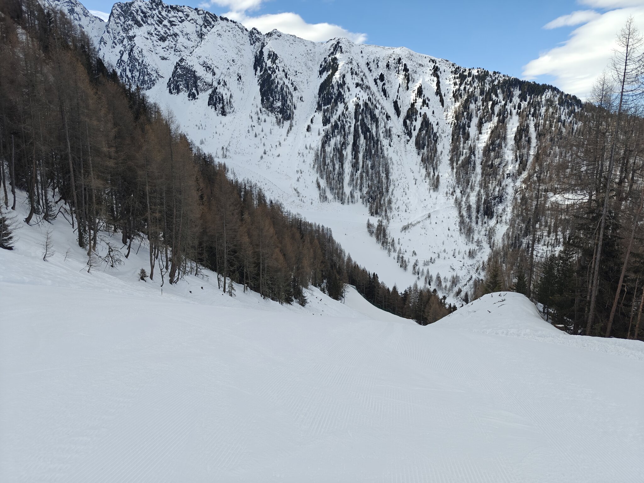 ^ Die Talabfahrt ist um 15 Uhr bereits ordentlich schattig und schon eher abgerutscht.