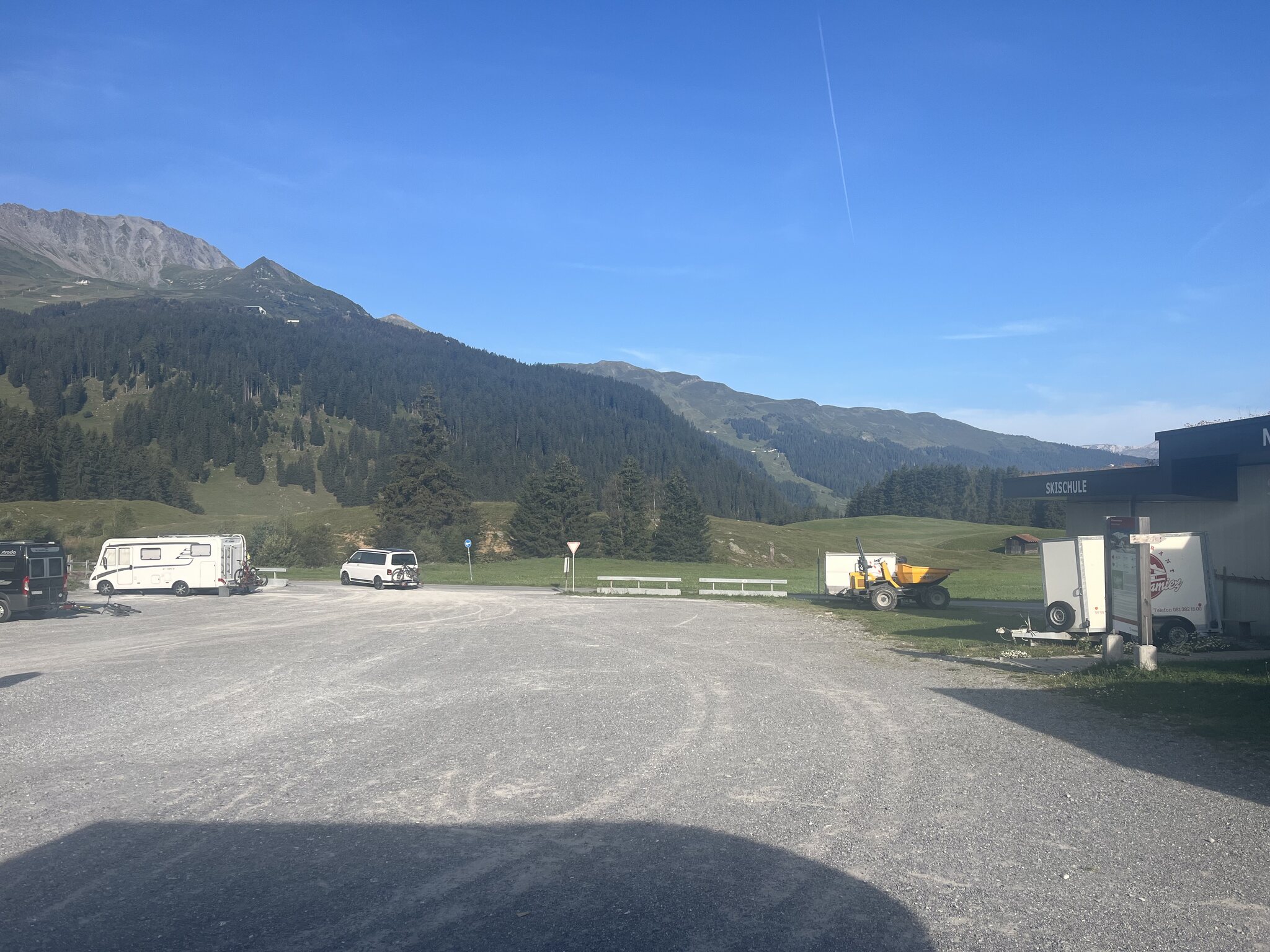 Dort gibt es 20 Parkn‘Sleep Stellplätze zum Fixpreis von 29.5 CHF + Kurtaxe inklusive Duschen und Toiletten. Ein paar Stromanschlüsse hat es auch. Ziel für den Samstag war Arosa über den Rothorngipfel