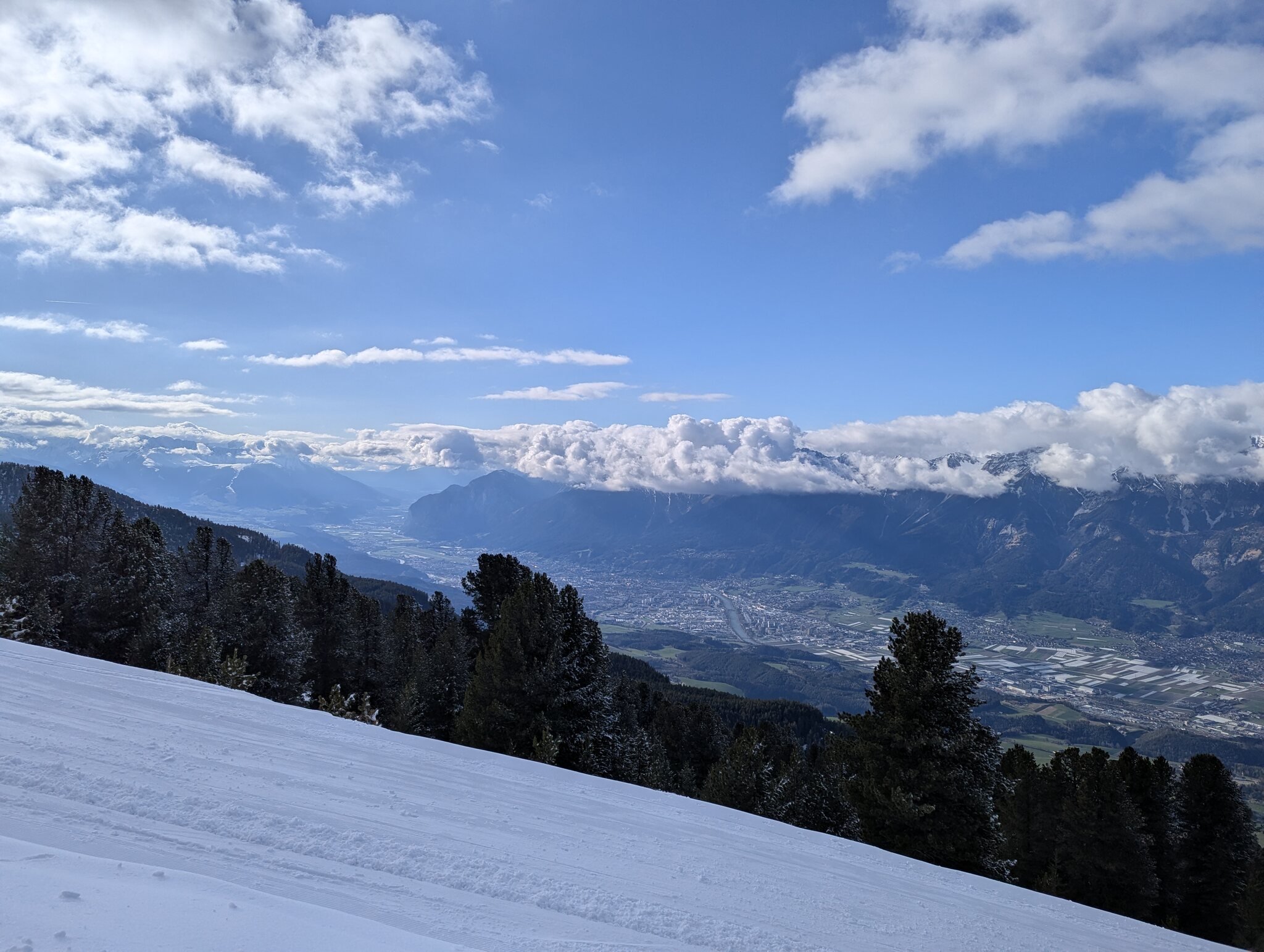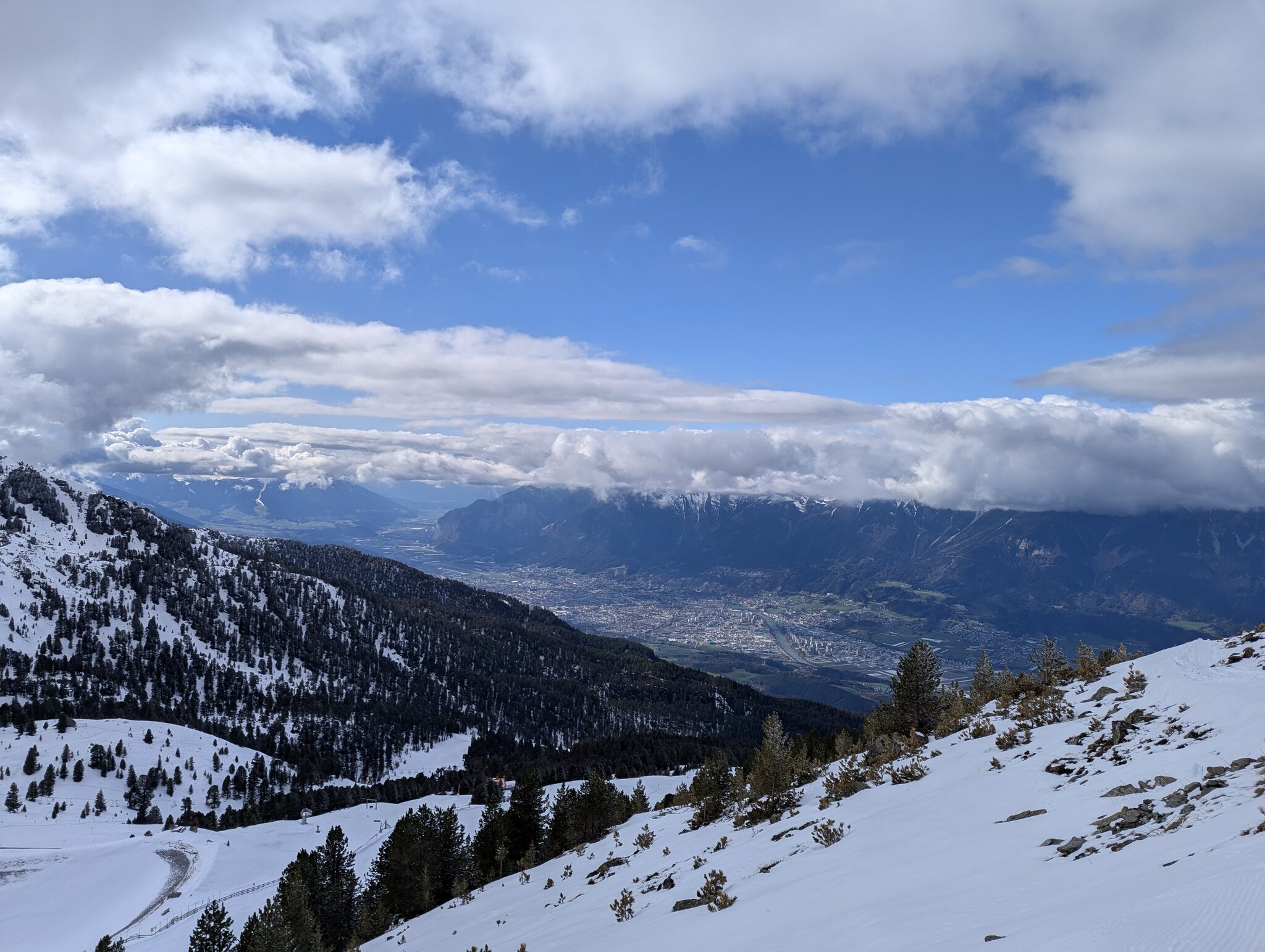 Über dem Inntal hängen noch dichte Wolken: