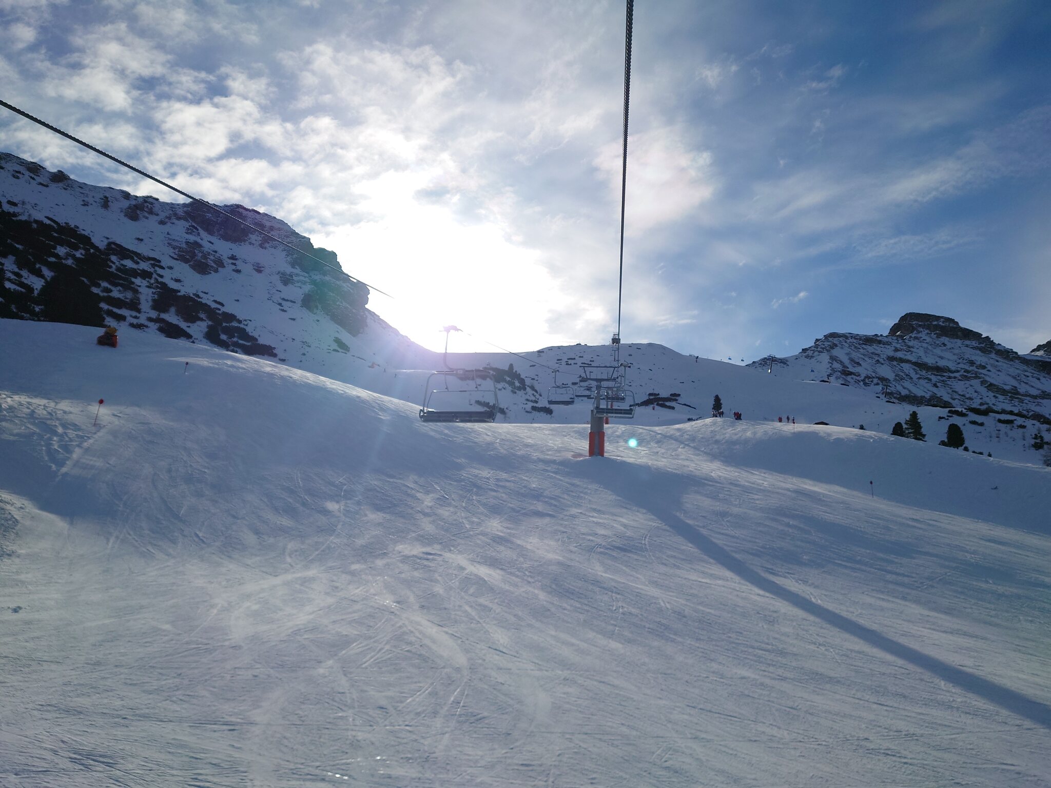 Dann wurde es Zeit für den oberen Bereich. Ab der Sennjochbahn und an der Panoramabahn gute Bedingungen! Auf den unbeschneiten Pisten bei der Zirmachbahn an sich auch in Ordnung, nur liegt hier ab und zu mal kleiner Kiese, nervt etwas.