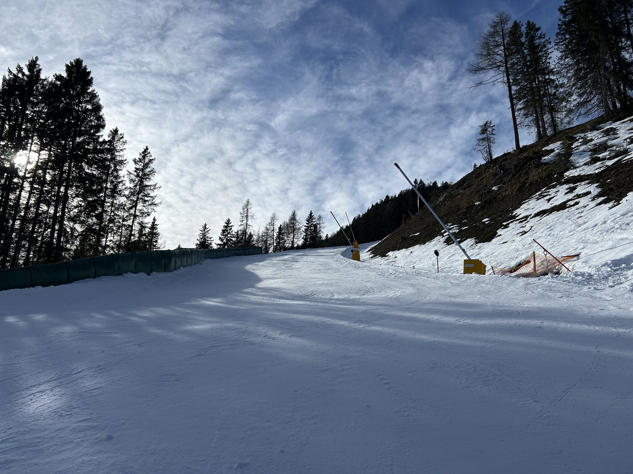 Aber dann wird es wirklich katastrophal, so wenig Schnee auf einer geöffneten Piste habe ich noch nie gesehen. Mich als geübten Restlfahrer stört das nicht, aber die Familien die ich dort herunterfahren gesehen habe waren wohl nicht erfreut.