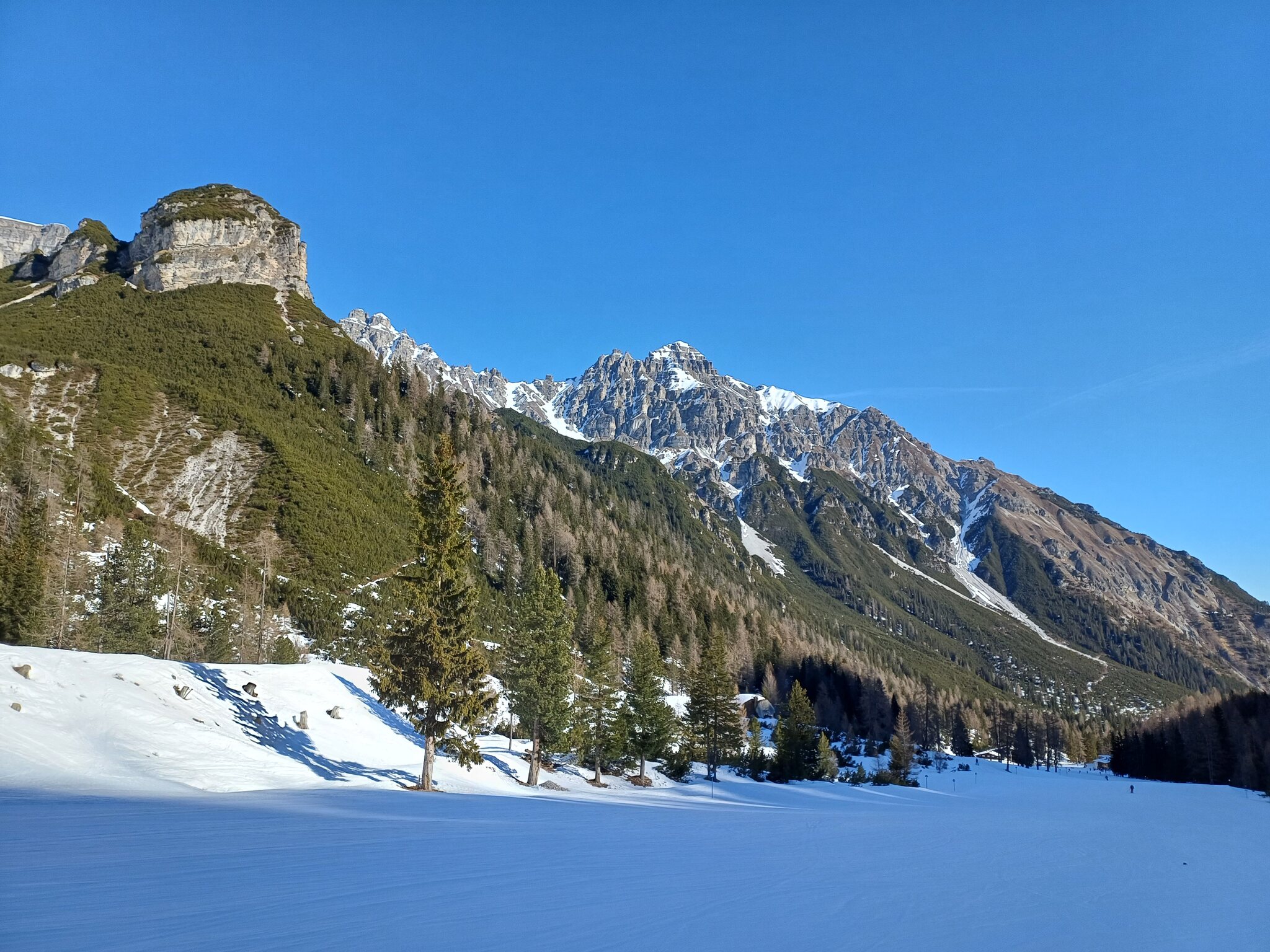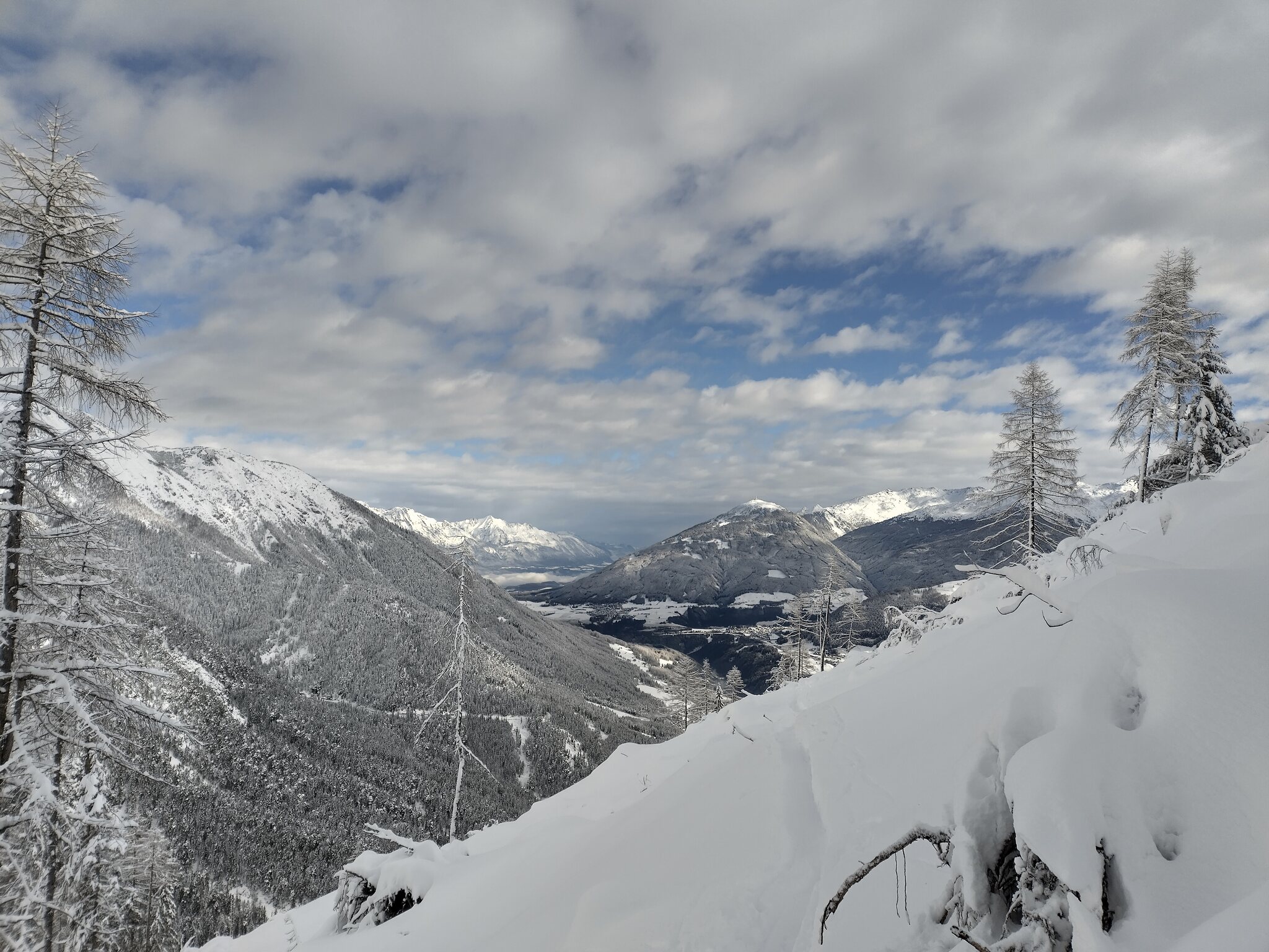 Heute in der Schlick. Anfangs noch etwas Nebelschwaden, mittlerweile Sonne. Aufgrund der Exposition nach der Bergfahrt nach oben