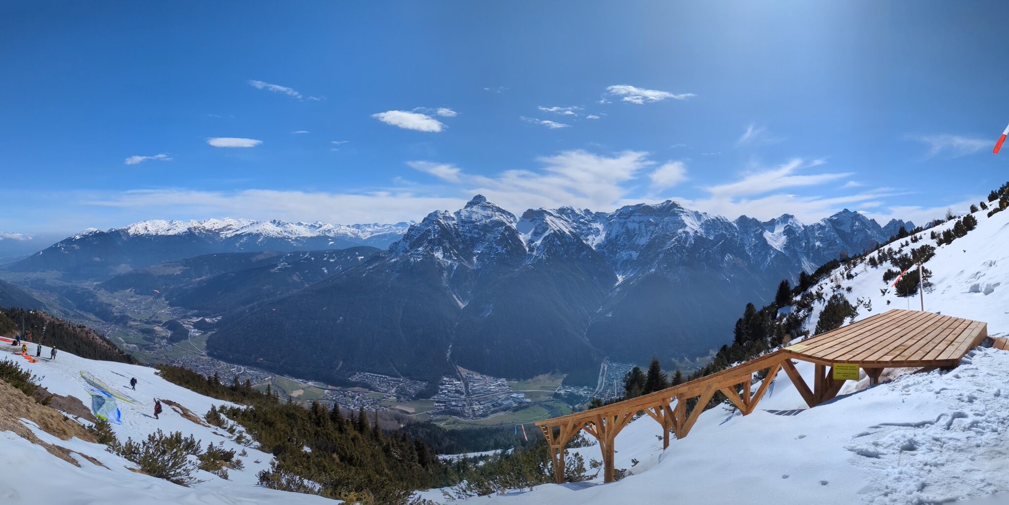Die Sonnenhänge der Kalkkögel sind schon fast schneelos.