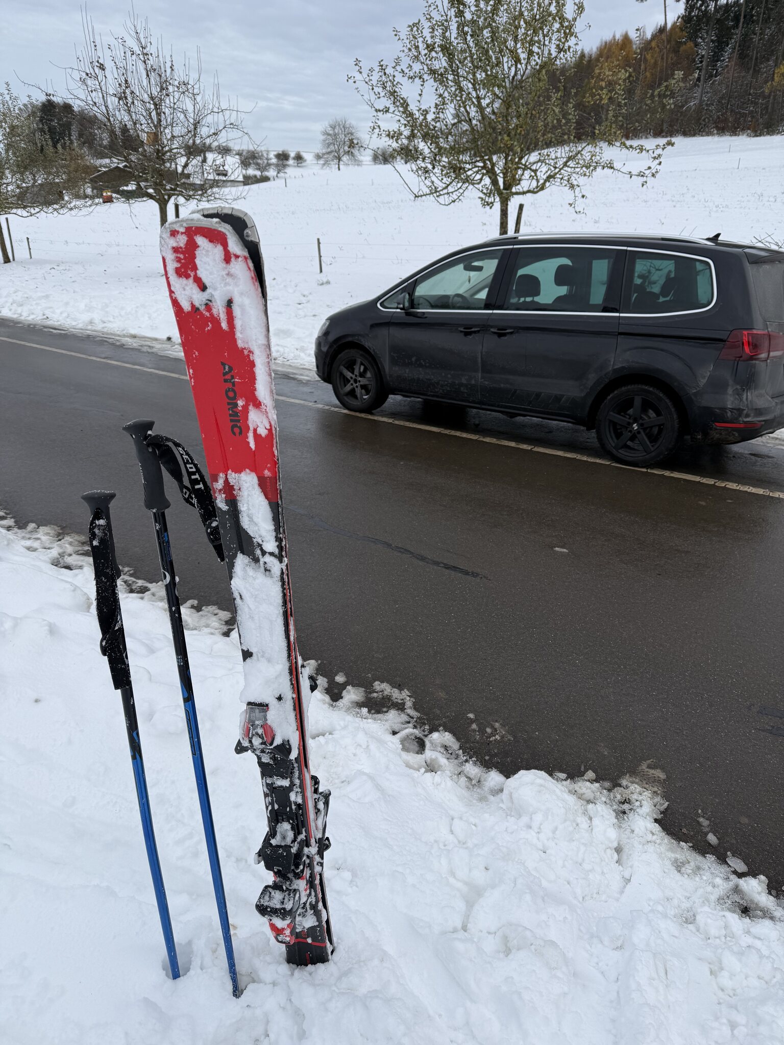 Da ich unten, ca. 150 Meter von der Talstation entfernt parkiert habe, konnte ich in leichtem Gefälle einen Auto-Ski-In machen.
