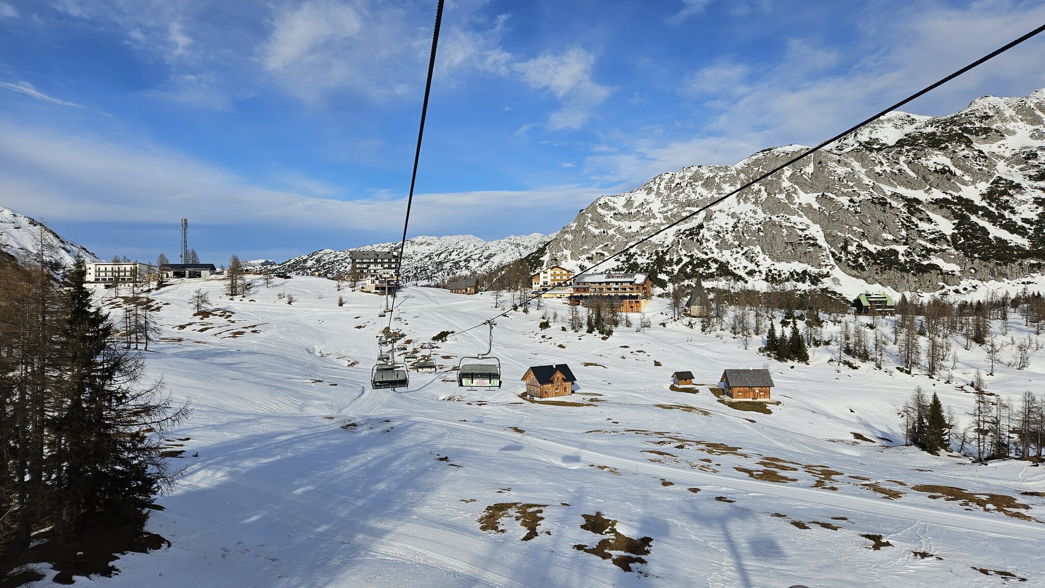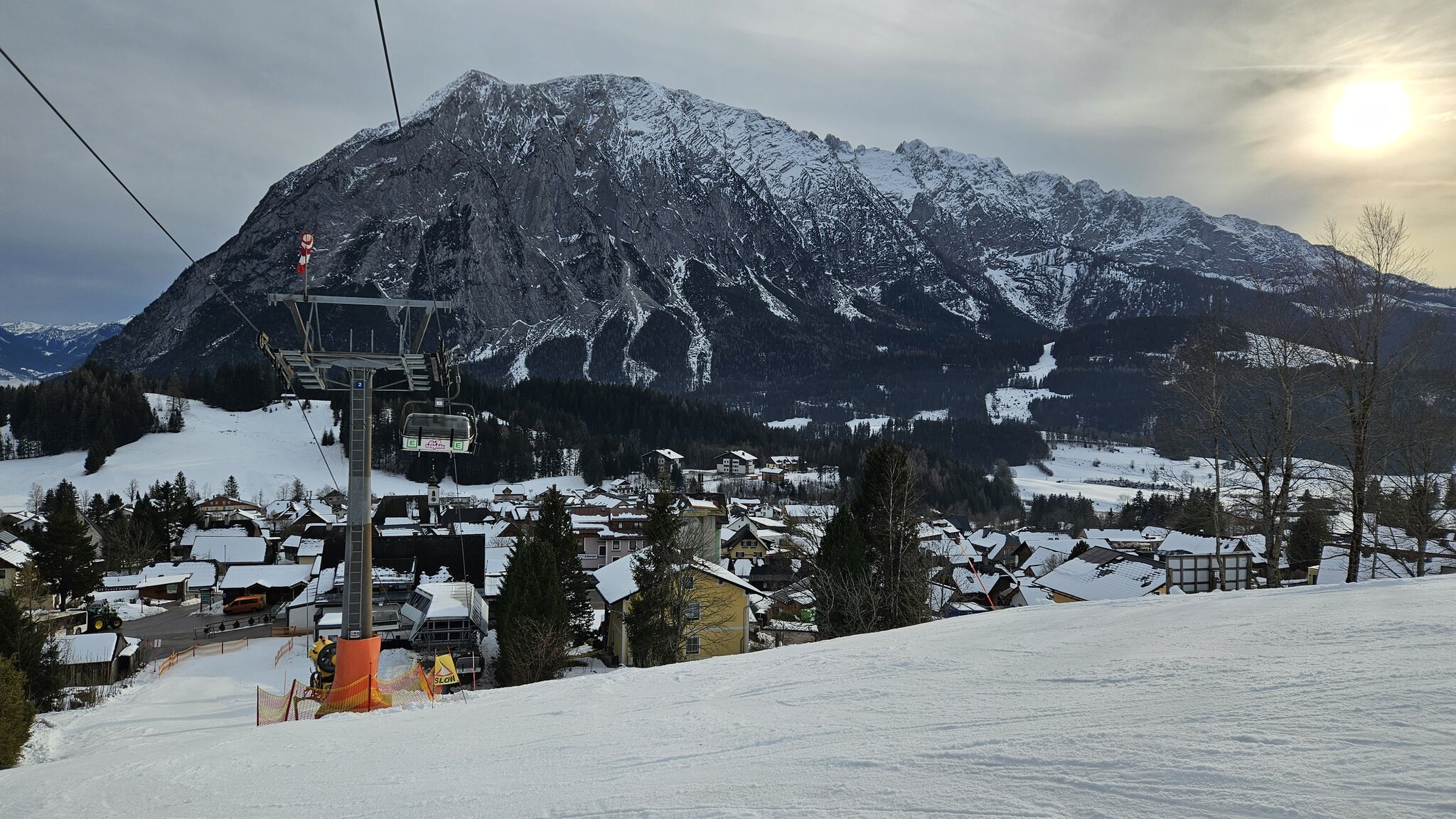 Der Lärchkogellift läuft momentan nur als Verbindungslift, die eigentliche Piste wird beschneit:
