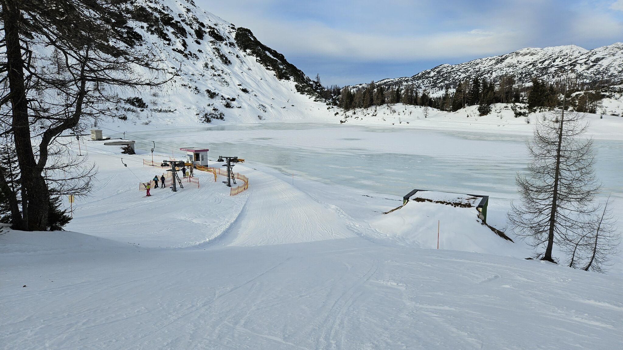 Oben dann mindestens 40 cm Neuschee und nichts los am Tauplitzseelift: