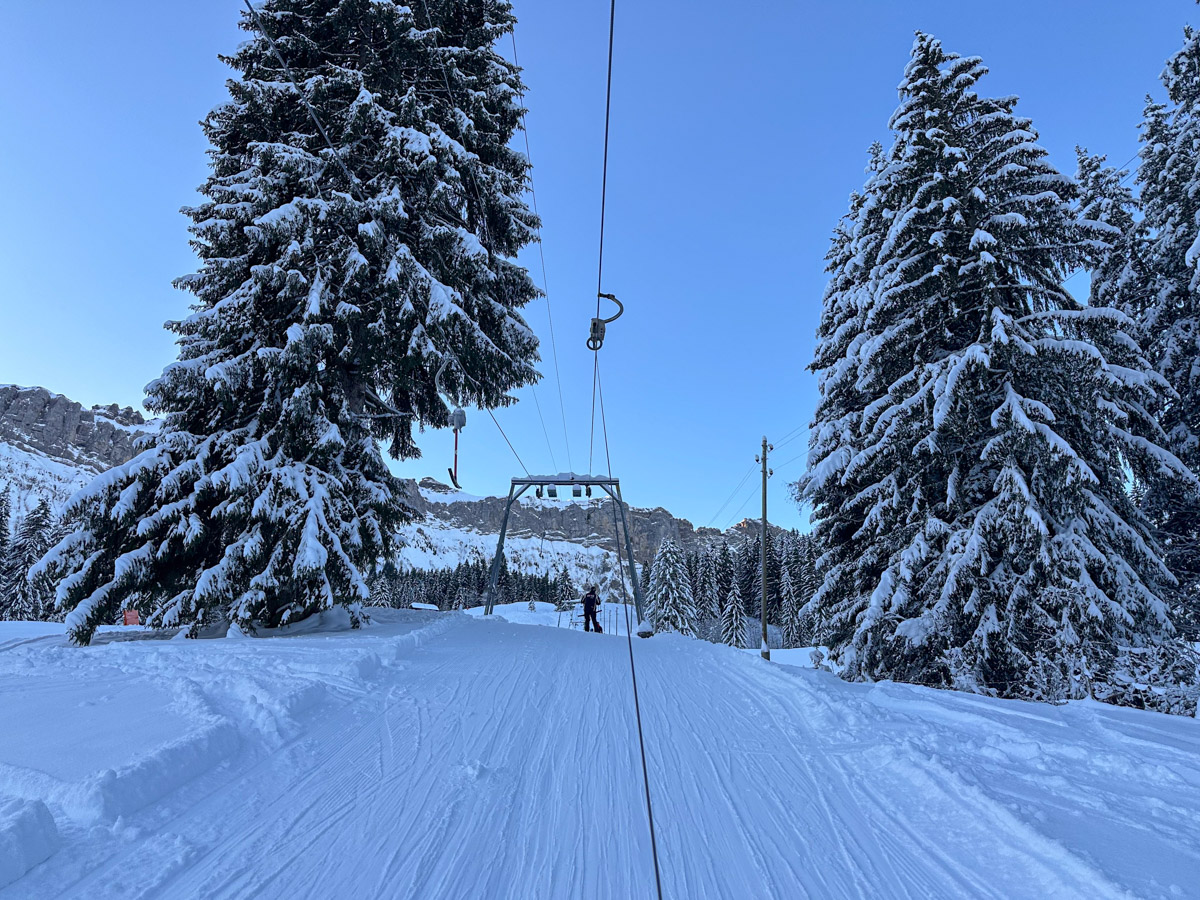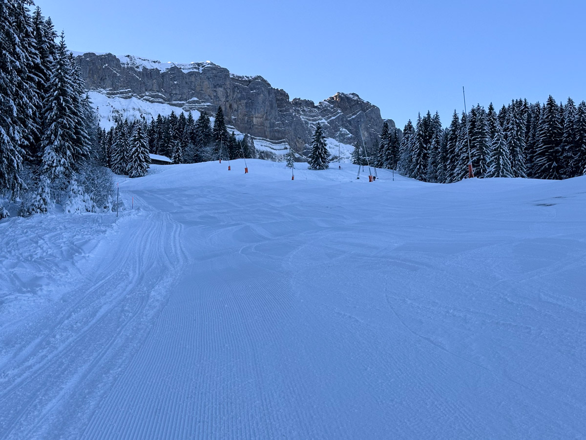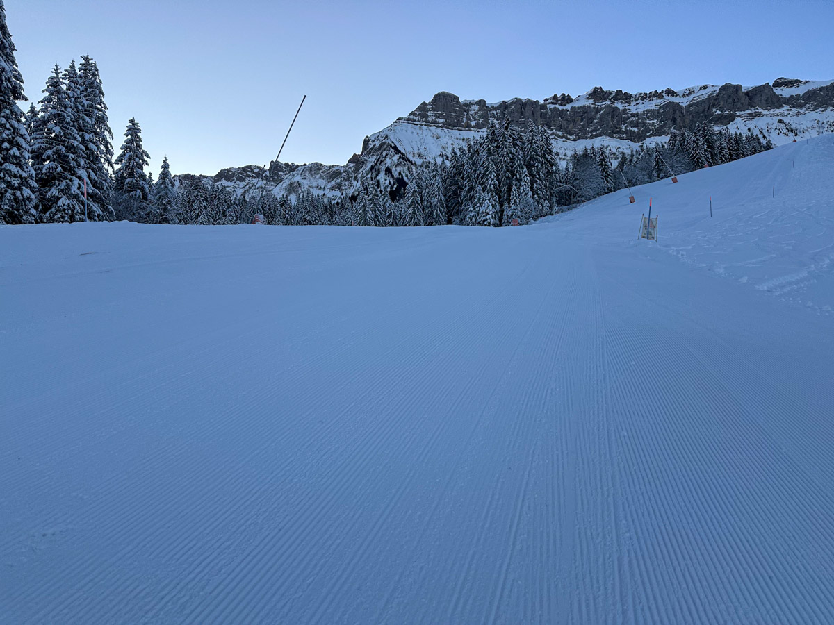 Aktuell gute bis sehr gute Verhältnisse, nur an wenigen kritischen Stellen (z. B. Steilstelle rechts vom Ausstieg am oberen Lift) kommt die Erde raus. An der Liftkreuzung am unteren Lift und in Lanzennähe hart bis leicht eisig.