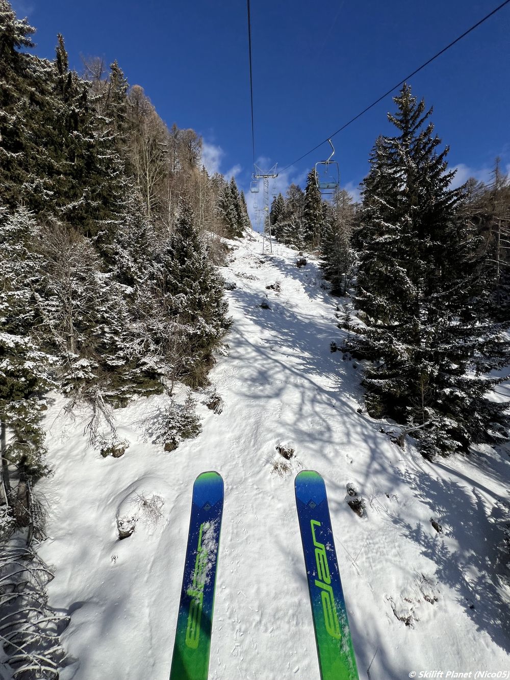 Schön gelegen, pistentechnisch aber nichts besonderes. 100m Fußweg zum Sessel