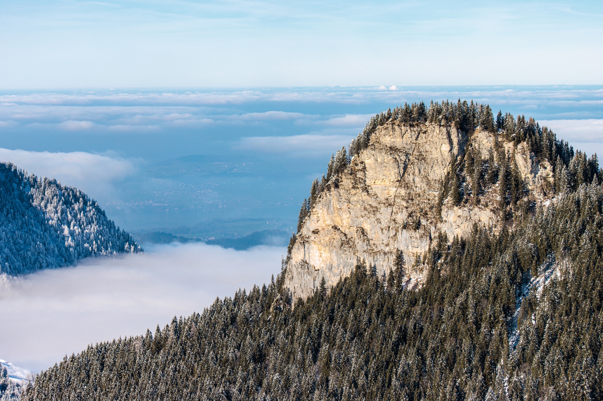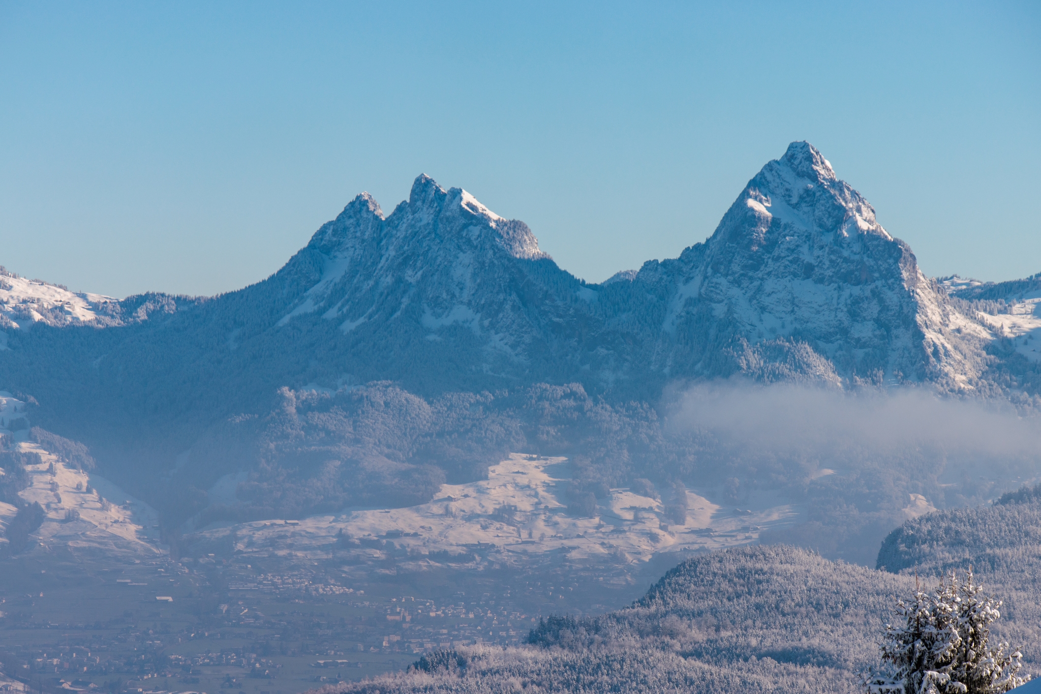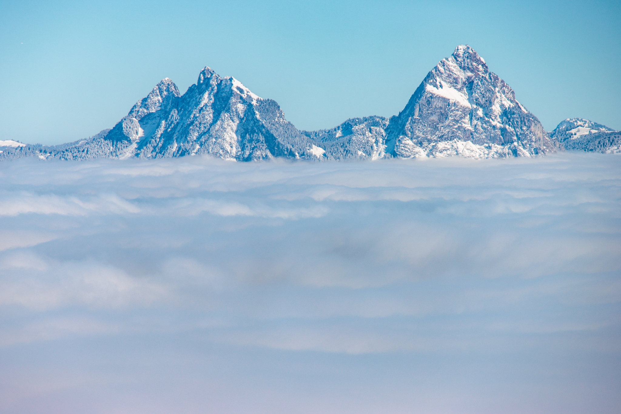 Die Mythen schauen gerade noch über dem Nebelmeer heraus.