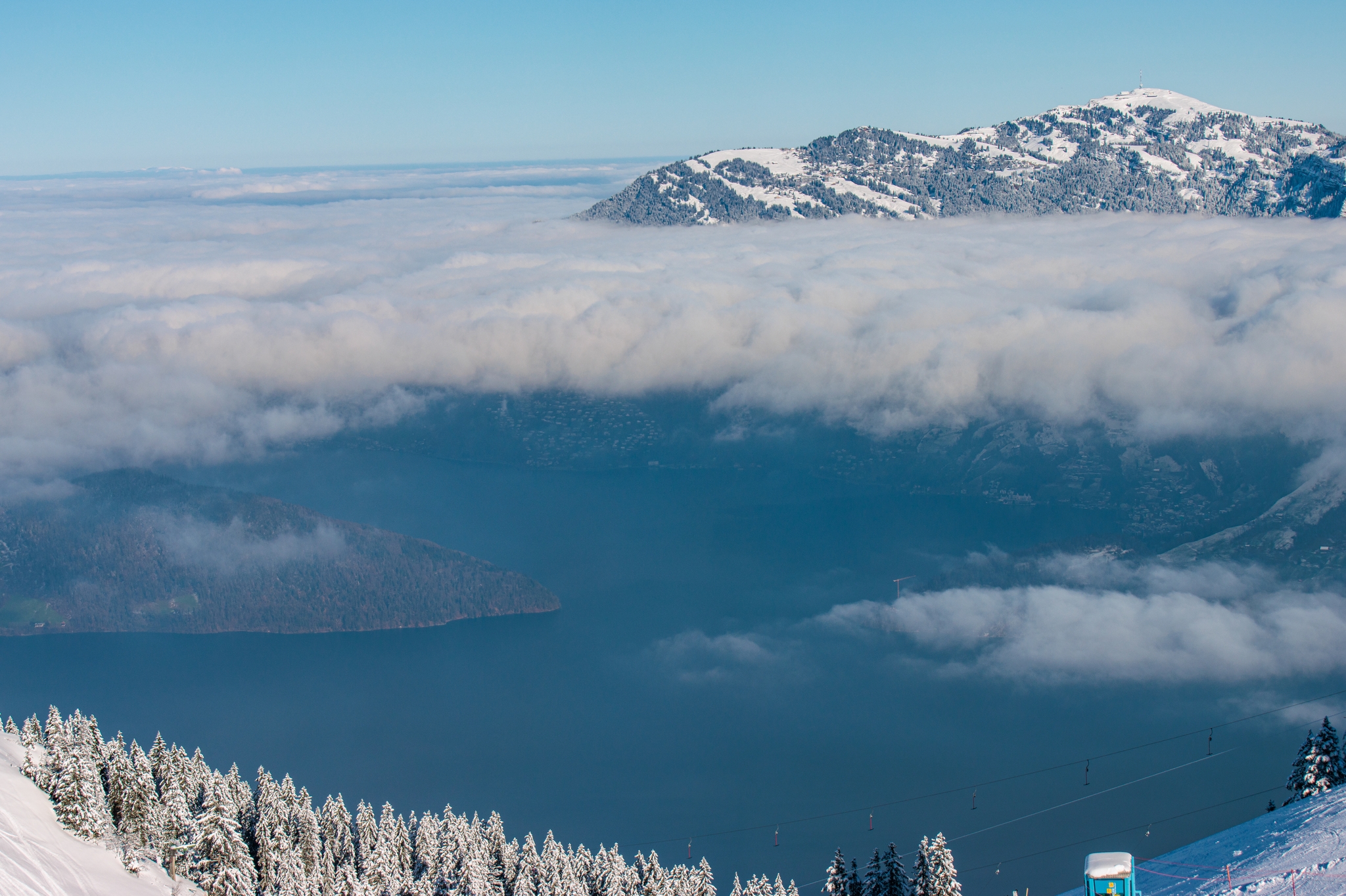 Gegen Mittag erreichte der Nebel seinen Höhepunkt, und der sonst spektakuläre Blick auf den Vierwaldstättersee war vollständig verschwunden. Erst gegen 15 Uhr riss die Wolkendecke wieder auf und gab das beeindruckende Panorama frei.