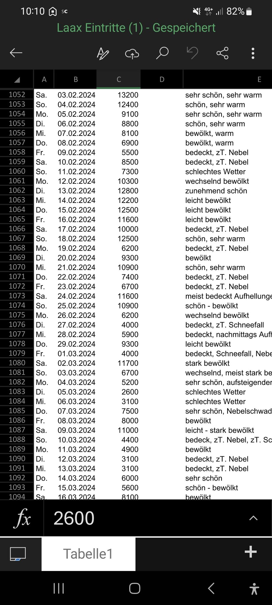 Oftmals wurden an Februar-Wochenenden die 16000 geknackt. Dieses Jahr nur einmal 15800, sonst 13000 und weniger.