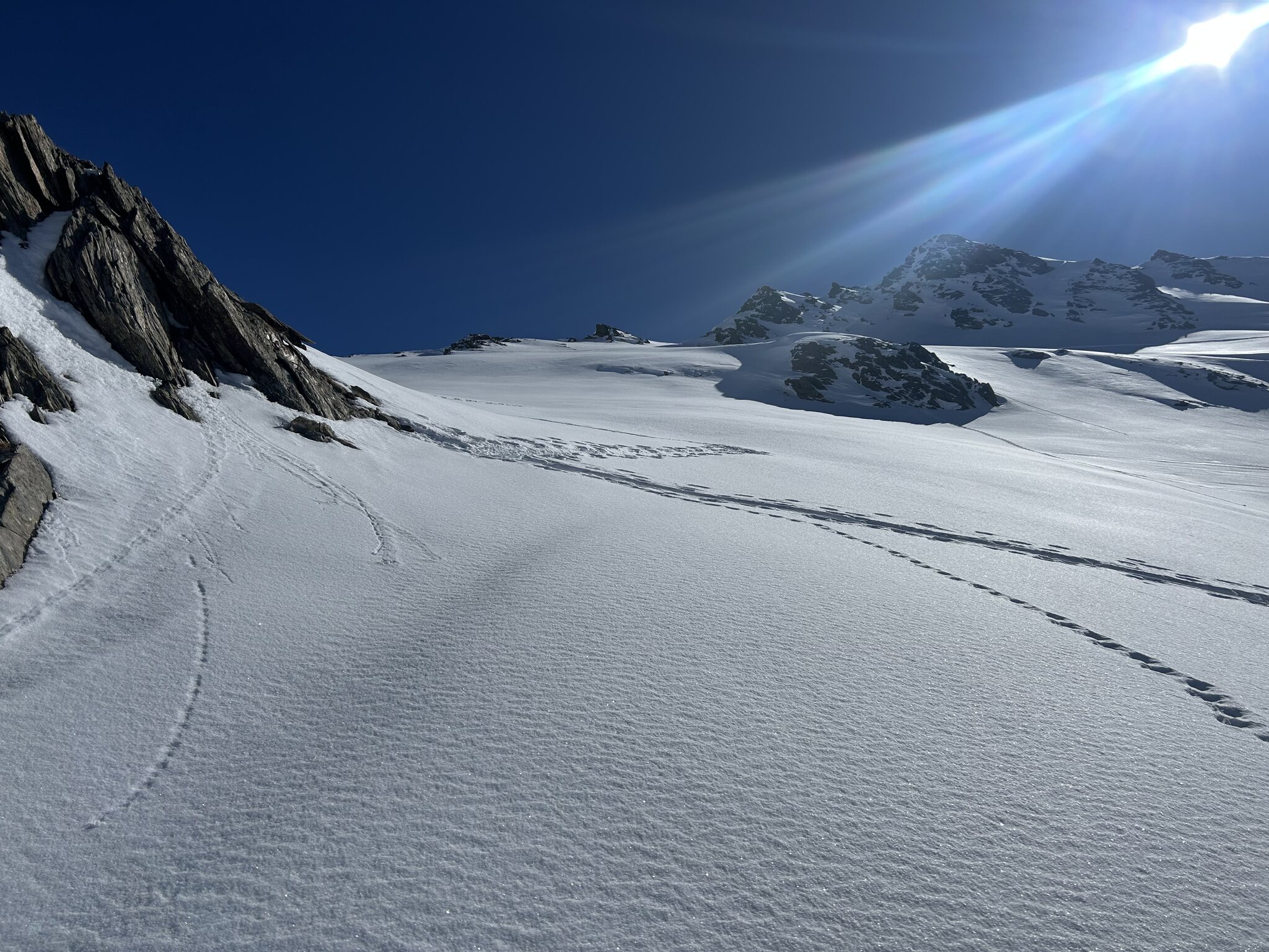Heute eine etwas kleinere Tour mit Liftunterstützung in die Ochsenlenke Scharte. Den Gipfel hab ich ausgelassen, für die Abfahrt bringt der keinen Mehrwert ;)